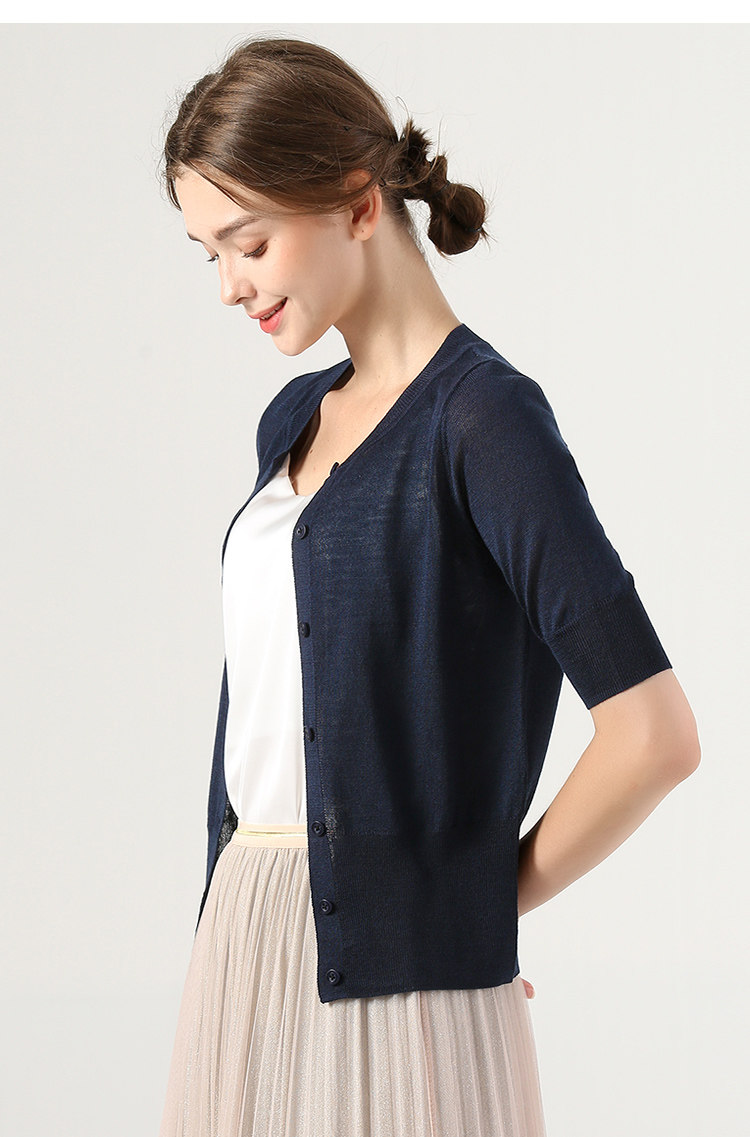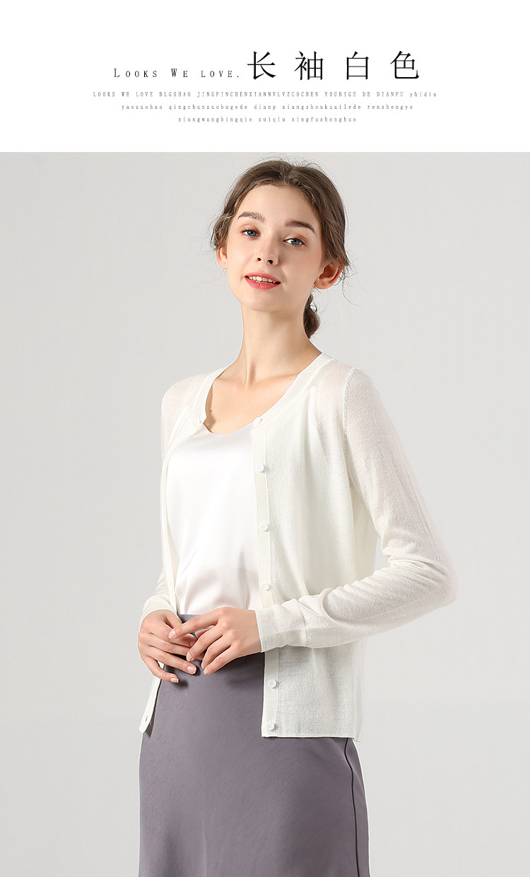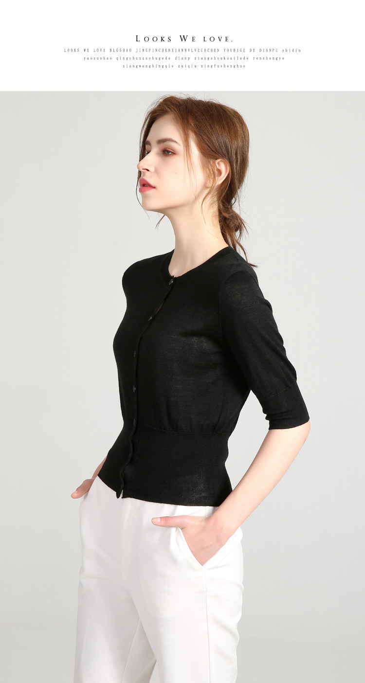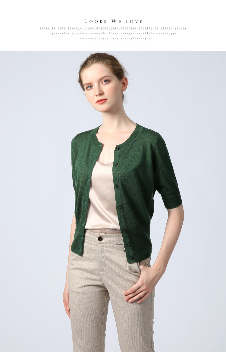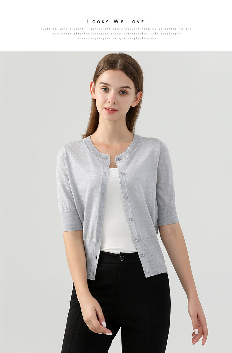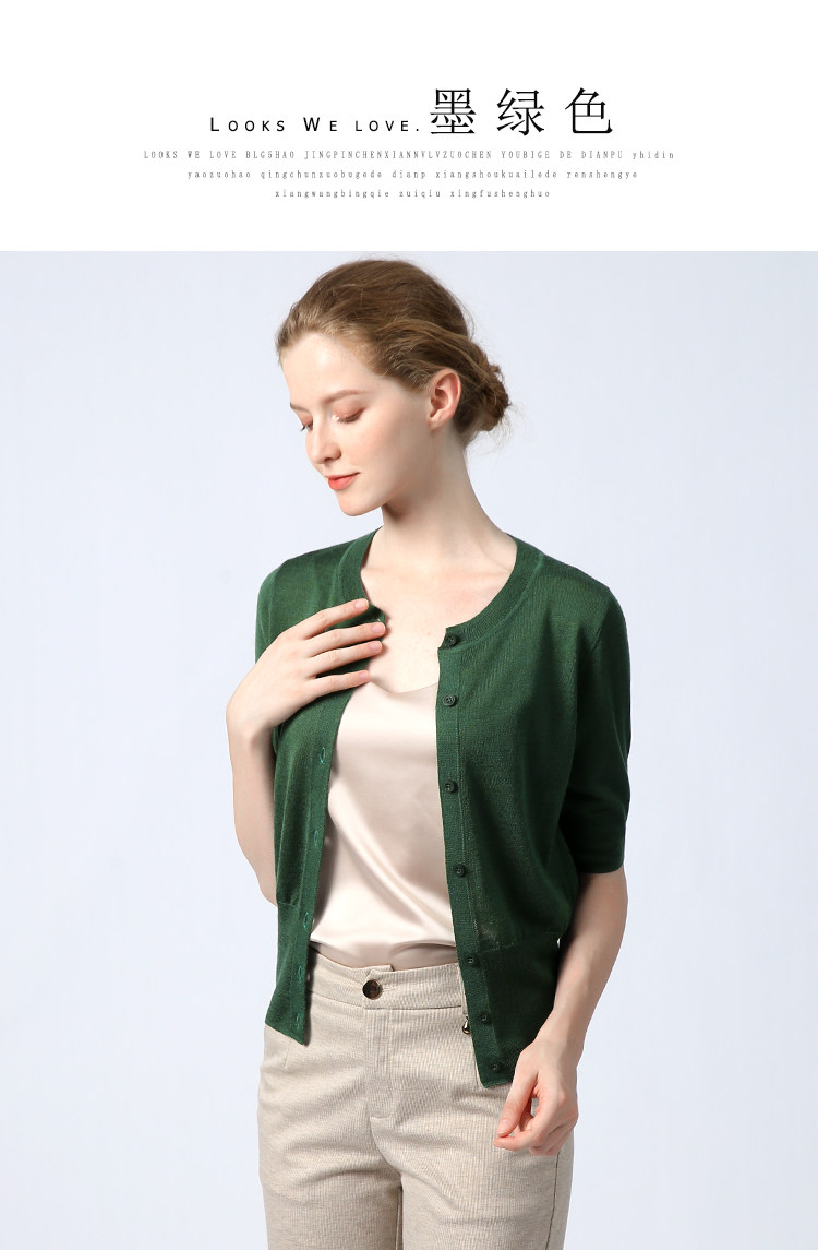 復古,美的內在氣質 短款,小圓領,自帶高腰線 上身效果顯高,顯瘦 針織衫小開衫,即是小外套,也是貼身上衣 超薄面料,舒適親膚,夏天穿涼爽透氣。