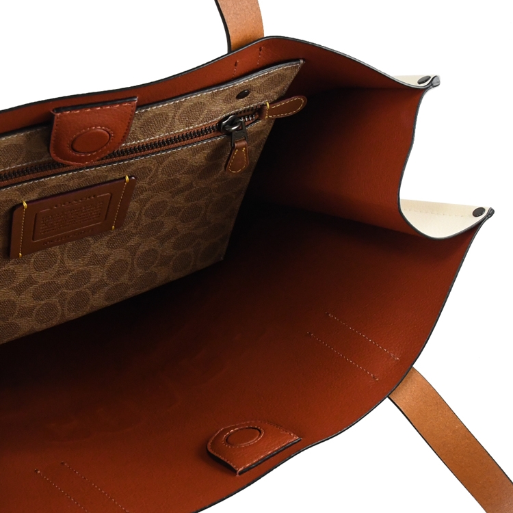 COACH 專櫃款再推熱銷改版款,新版肩背托特包系列,採用荔枝皮革搭配品牌LOGO設計,處處顯現精緻質感,磁釦開口/內有1印花襯裏拉鍊袋,附質感皮革LOGO吊飾,可放A4文件、摺疊傘、水壺等隨身物品,不用大包小包,官網熱銷款,無論外出逛街或出遊皆實用,搶眼又好搭的風格。