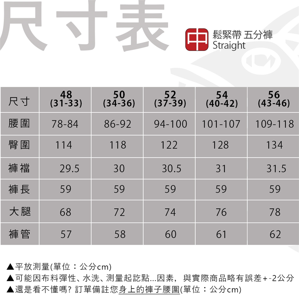 E.水洗後會有2-3%縮率,此為正 常現象,在修改褲長時請稍微增長褲長;此外,為了防止縮水,請勿使用烘乾機烘乾衣物。