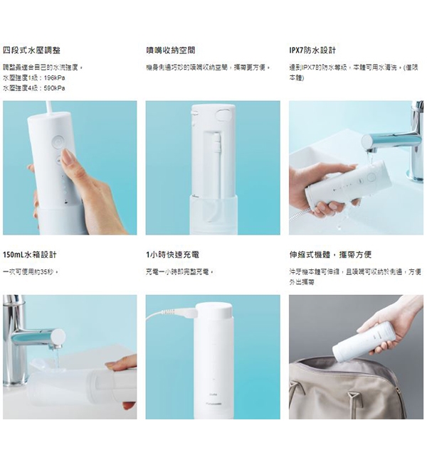 Panasonic 國際牌 無線噴射水流國際電壓充電式沖牙機 EW-DJ31-W