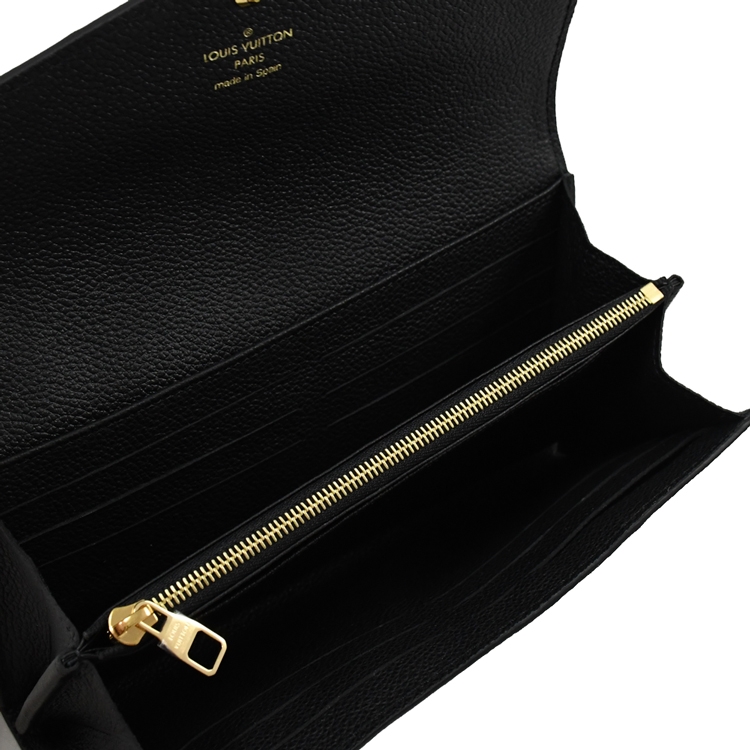 LV 這款靈巧的Sarah長夾,採用精緻的Monogram Empreinte壓紋牛皮製作,整體設計優雅,設有多個口袋,優雅又女性化的設計,拉鍊開口/內有16信用卡夾+2貼袋+2風琴式夾層+1拉鍊零錢袋,錢包外形小巧但內部寬敞,流滿都會時尚味道,是款時尚的單品配件。