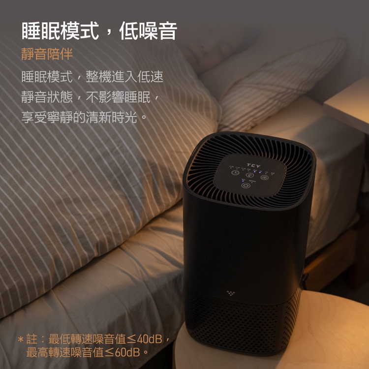 濾網更換指示燈提示,3段定時、3種風速、低噪音睡眠模式,靜音陪伴