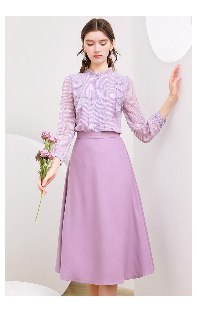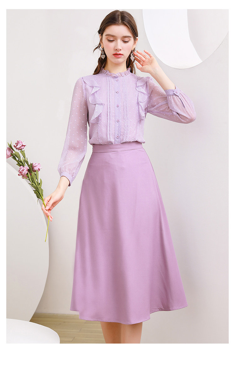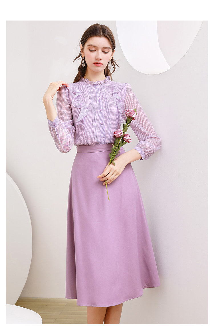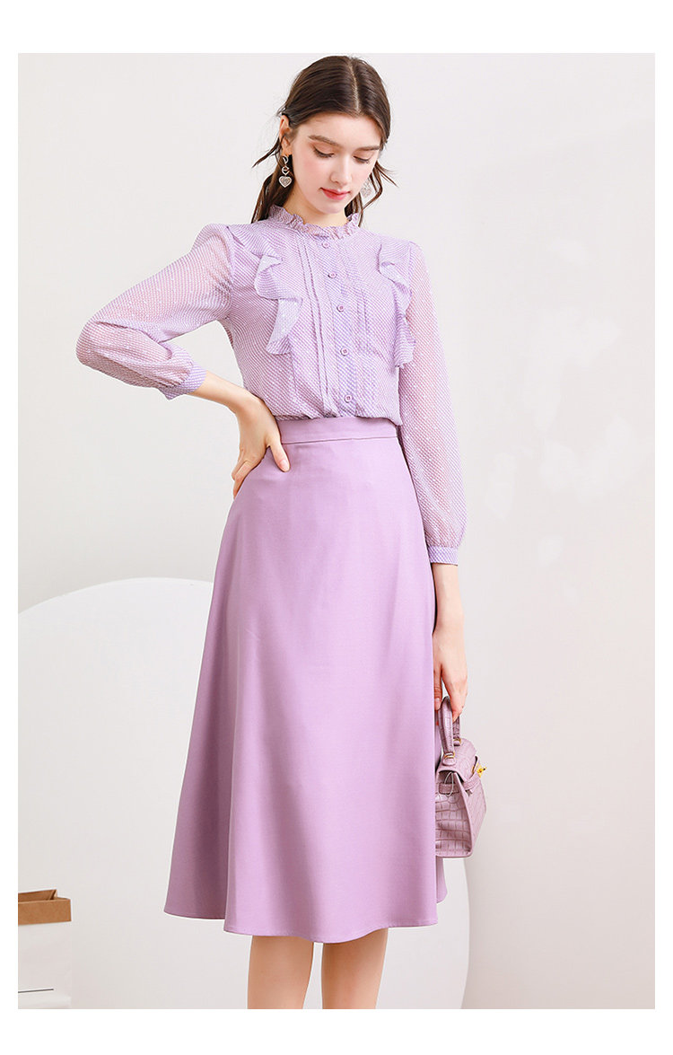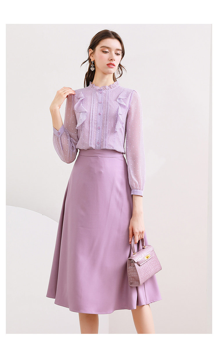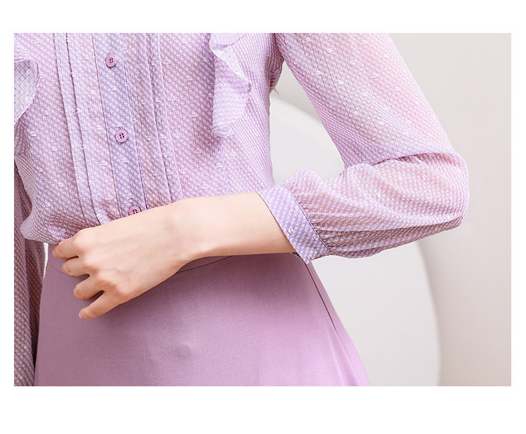 | gao段位的職場通勤打開方式,靠一件美麗的套裝就可以實現!流暢的荷葉邊讓雪紡衫變得越發甜美靈動,香芋紫加上精致復古的千鳥格,從細節處打破常規和乏味,轉換成時尚減齡的元素。簡單搭配同色系A字裙輕松玩轉色彩,穿上顯高又顯瘦,看起來就很有品味! |