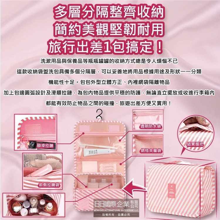 ●品名:韓版可吊掛式多層分隔防塵防潑水旅行收納袋盥洗包