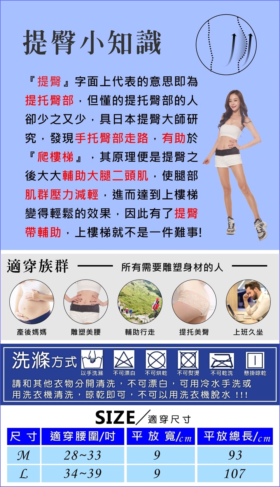 A: 在圖片的最底下會整理出該商品的腰圍及臀圍,依據您的身型去選購就行了。請依照腰圍為主選購,如腰圍與臀圍介於兩者間以個人喜好的緊度選購大一碼或小一碼
