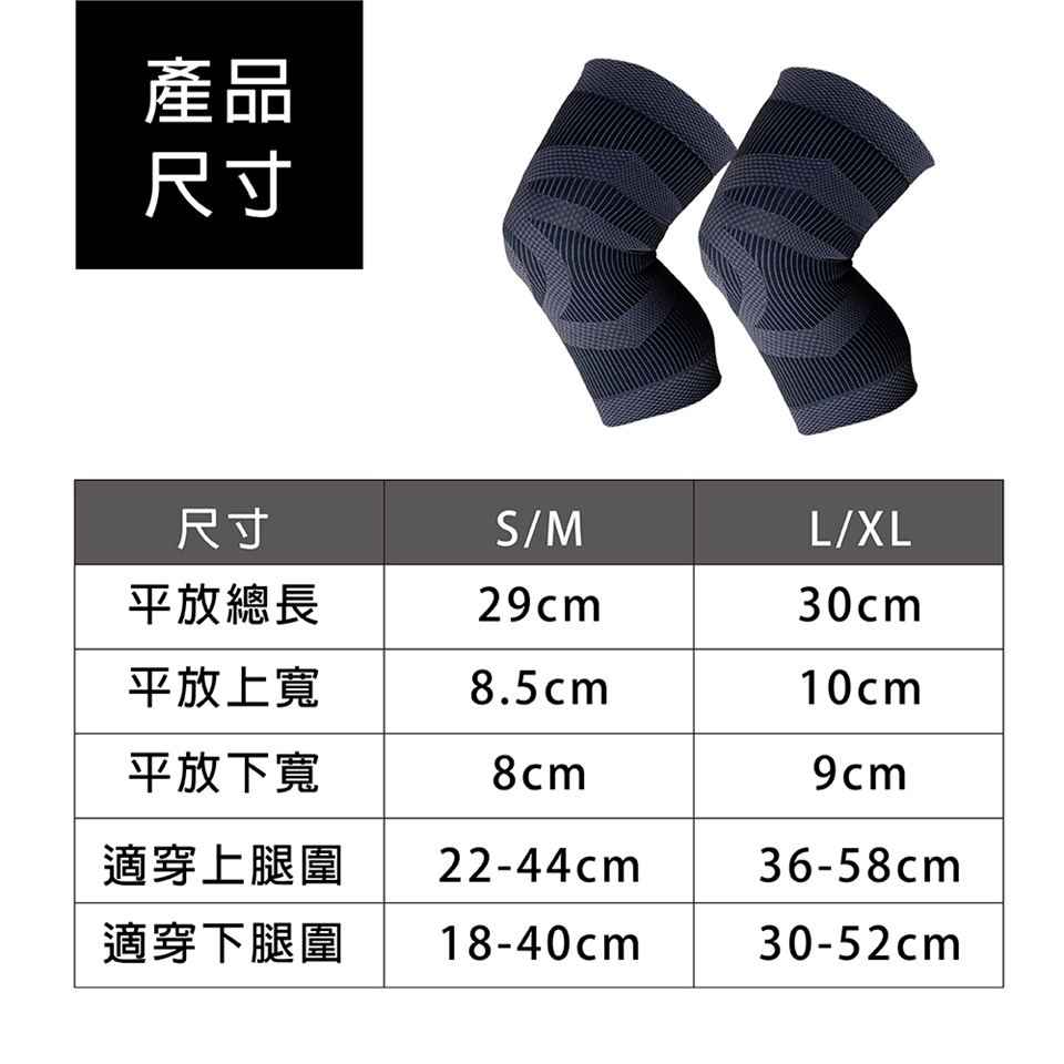 L/XL適穿上腿圍36-58(公分)、適穿下腿圍30-52(公分)