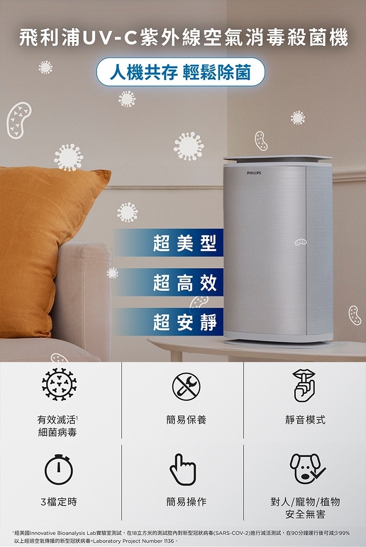 【PHILIPS 飛利浦】UV-C紫外線空氣消毒殺菌機-小白殺 PU008