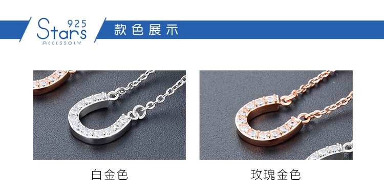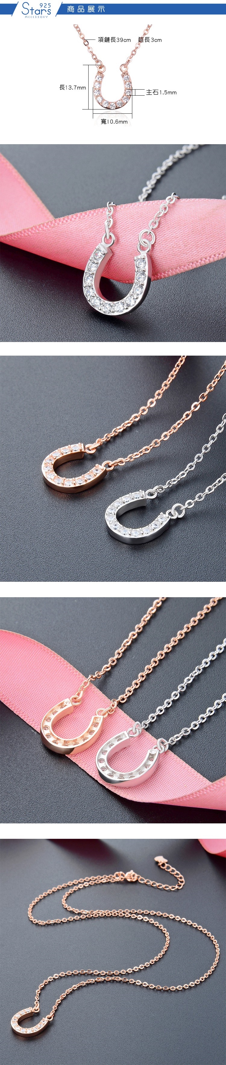 【925 STARS】純銀925微鑲美鑽經典馬蹄U形造型項鍊 造型項鍊 美鑽項鍊 (2款任選)