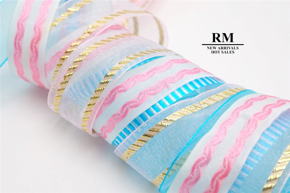 K355G-PT058 7/8inch X 25yard(淡粉+金色)