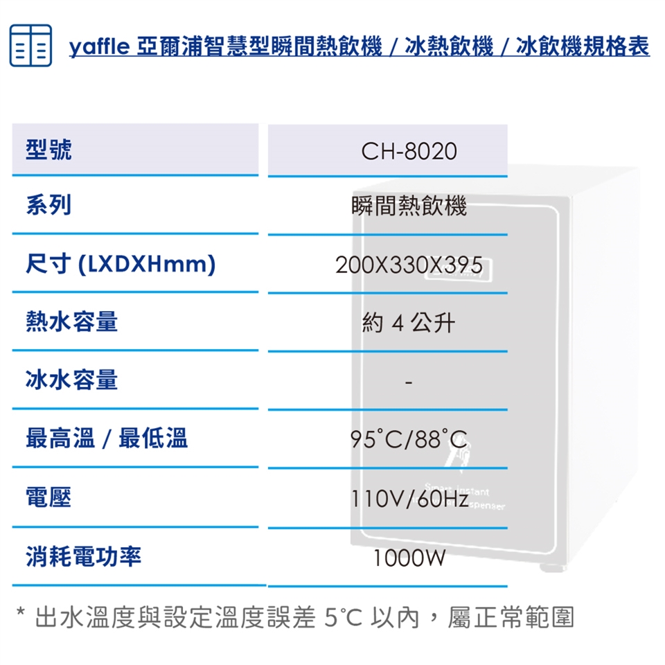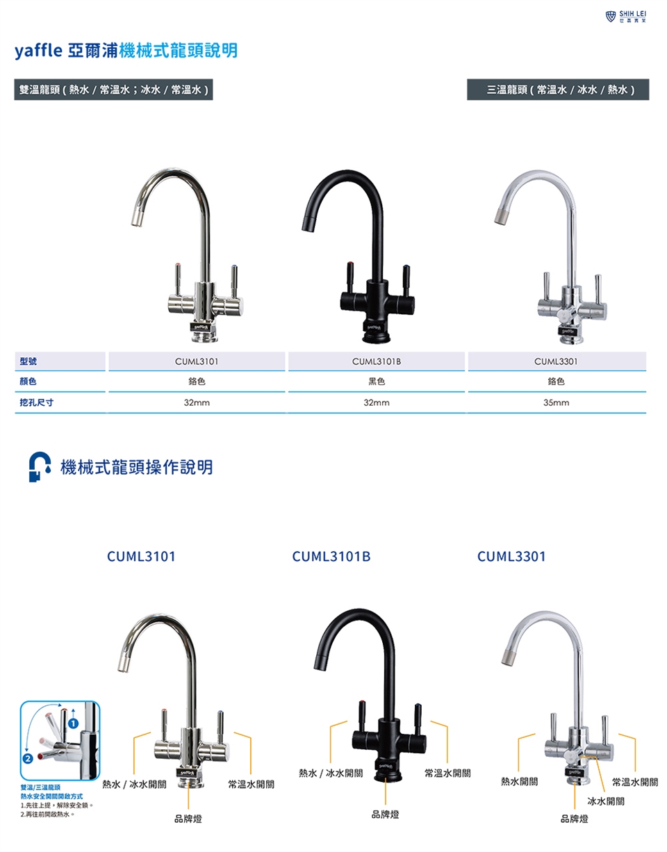 ○適合安裝於沒有熱水之處,如吧檯、化妝間需間歇性用水地方