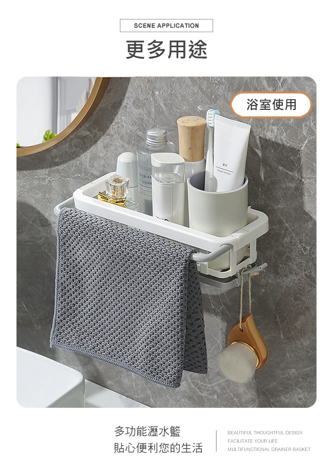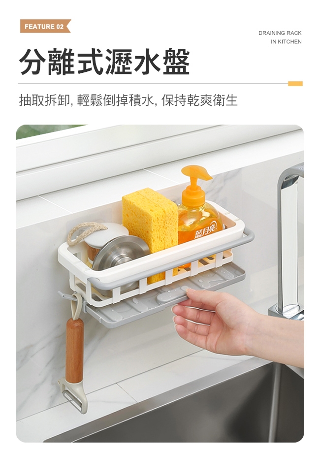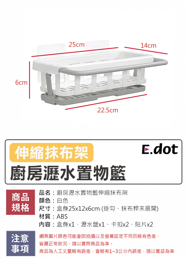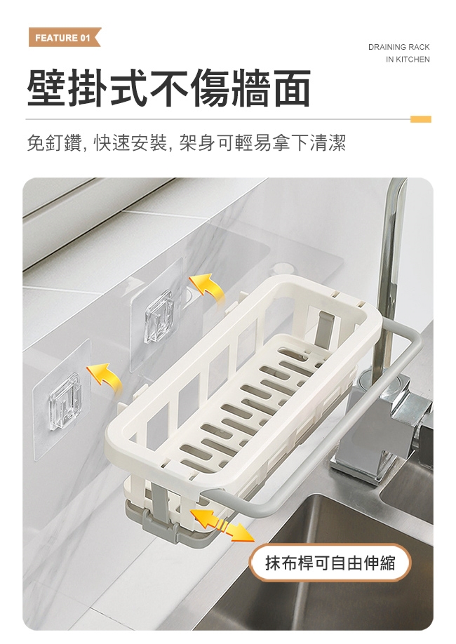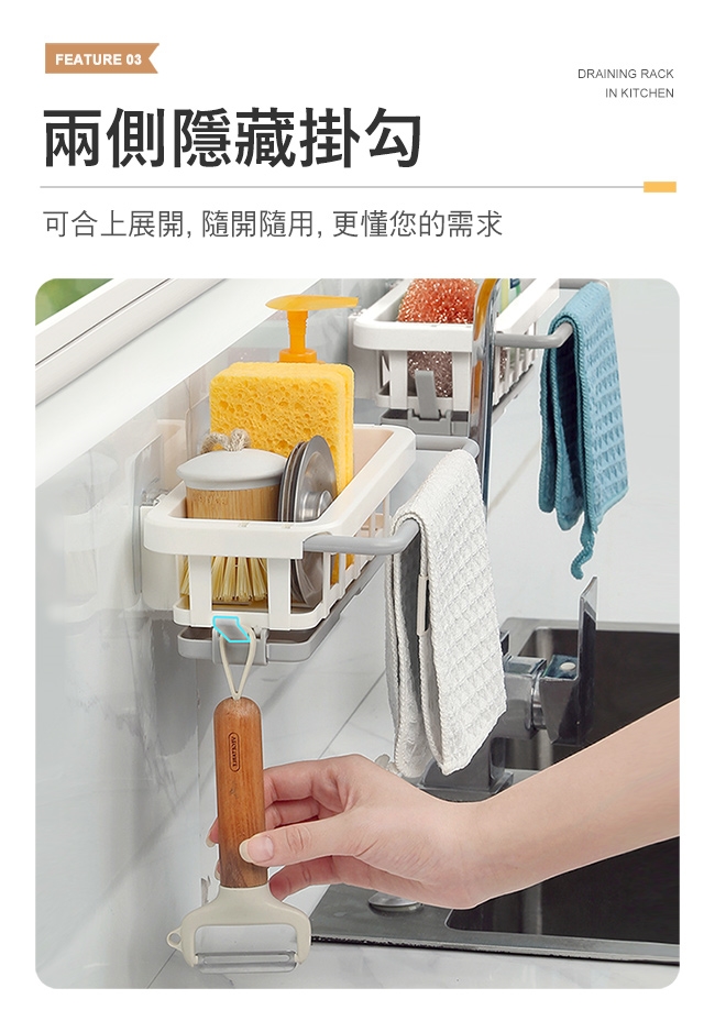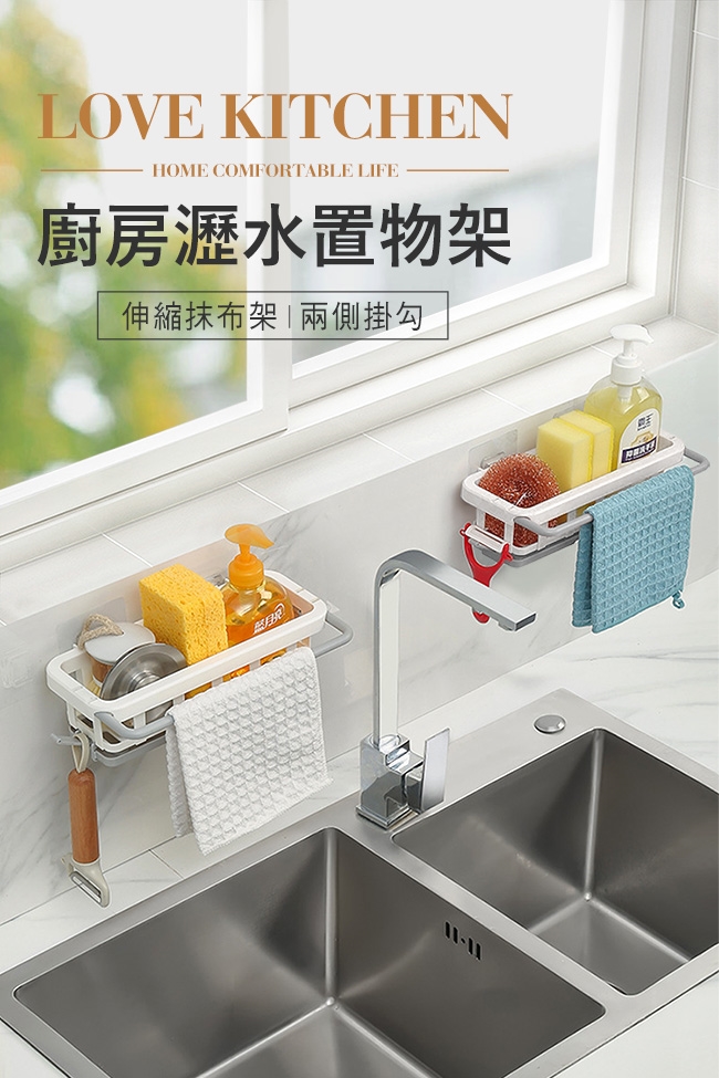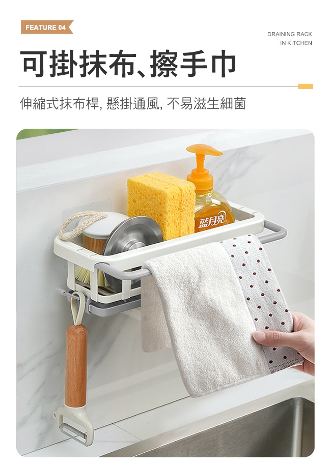 ◆ 商品名稱:廚房瀝水置物籃伸縮抹布架