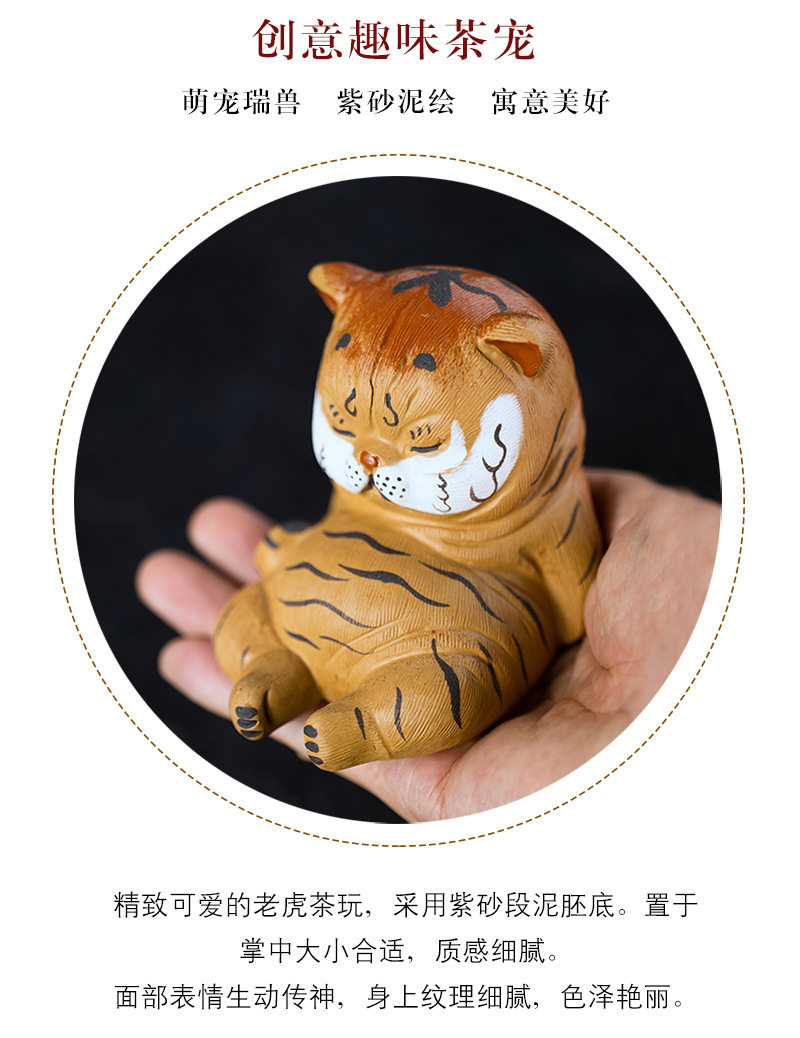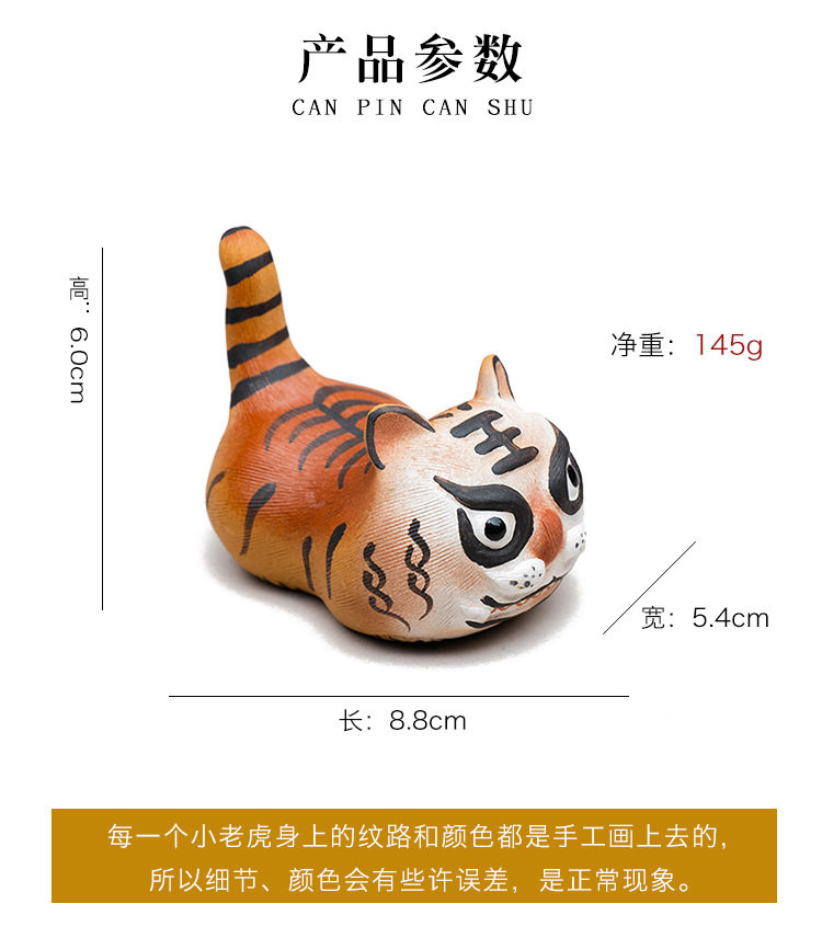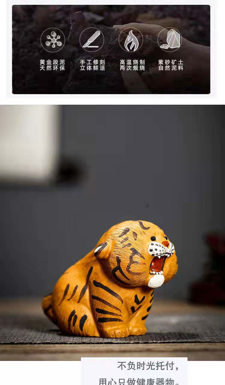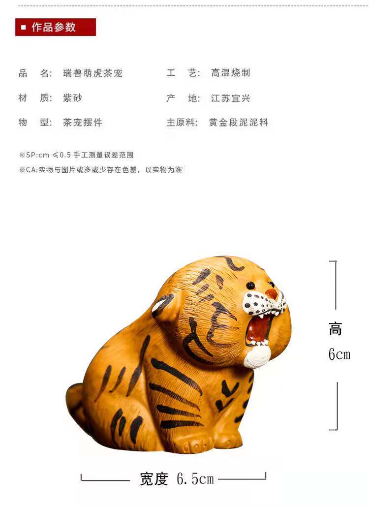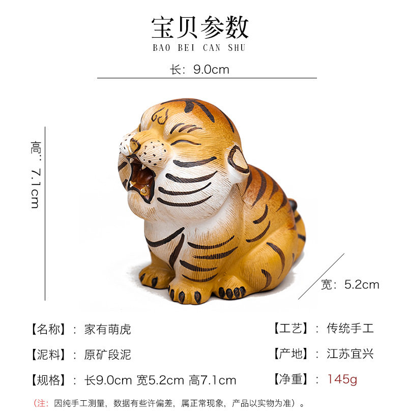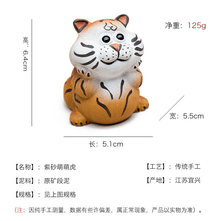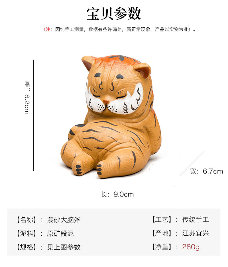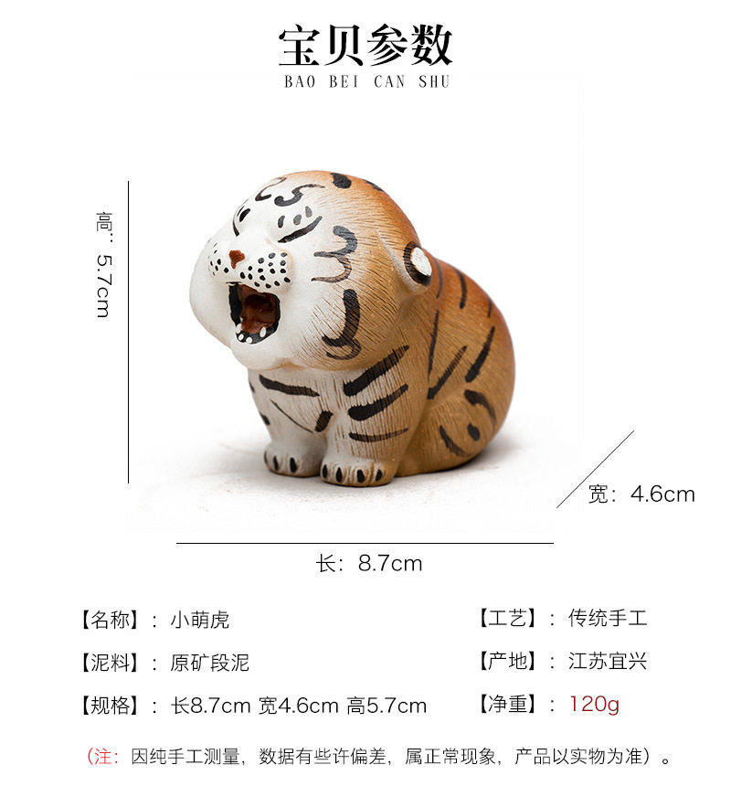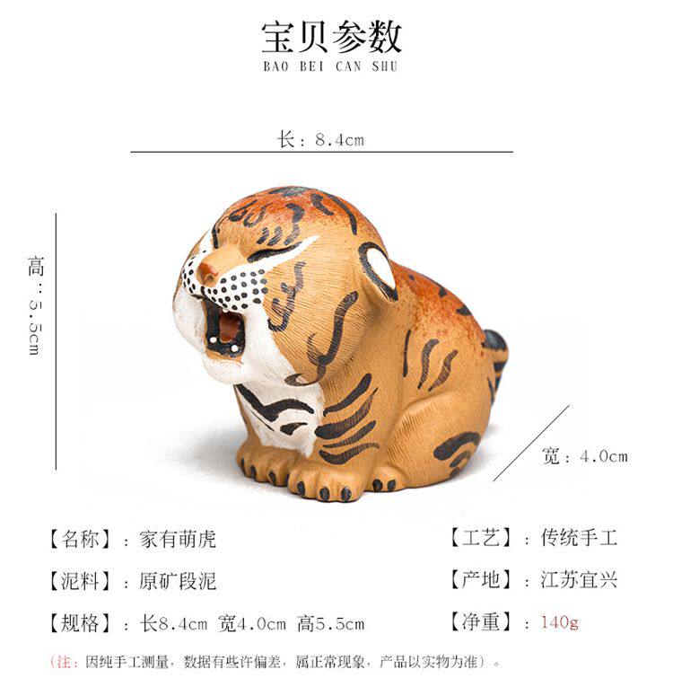 泥料:清水泥、段泥、白泥、黑泥【舒展虎】規格:長度:11.5厘米;寬度:4.7厘米;高度:5.65厘米。底款:娟亮紫砂
