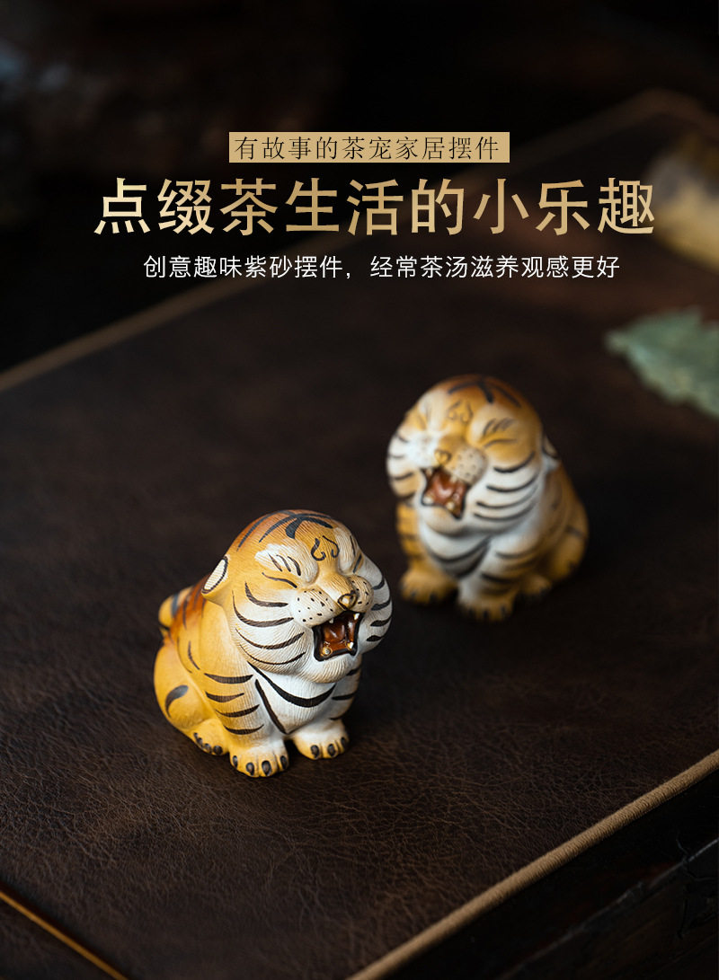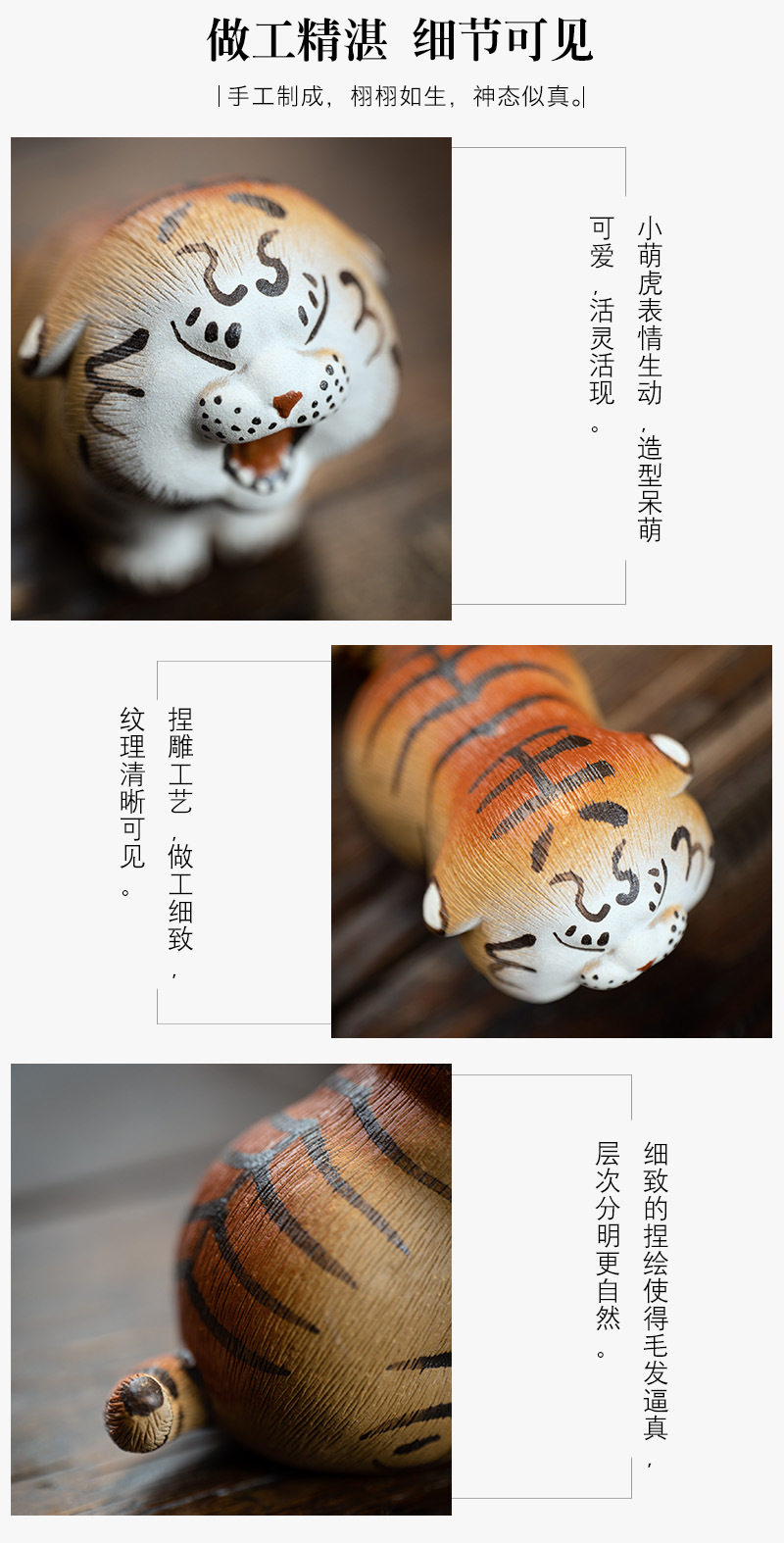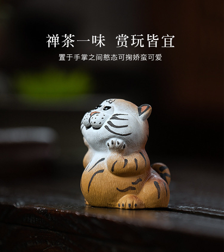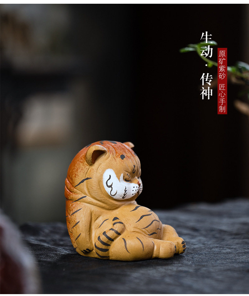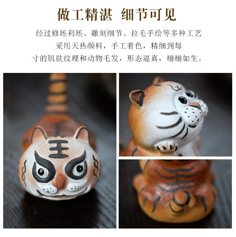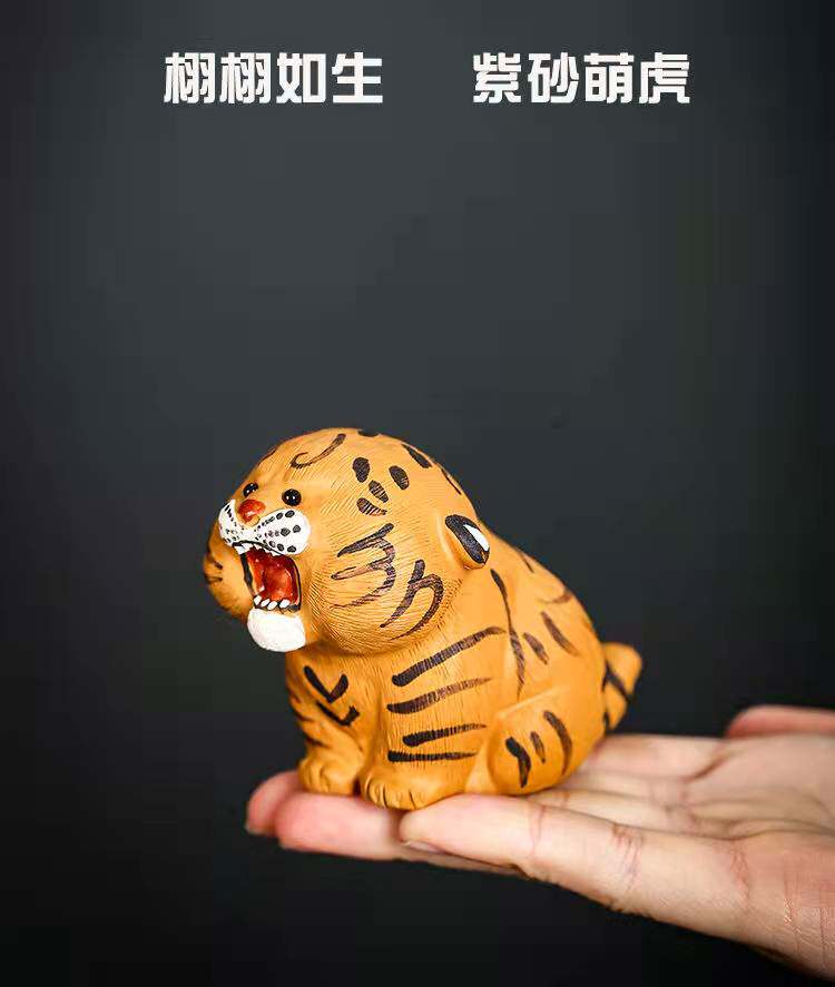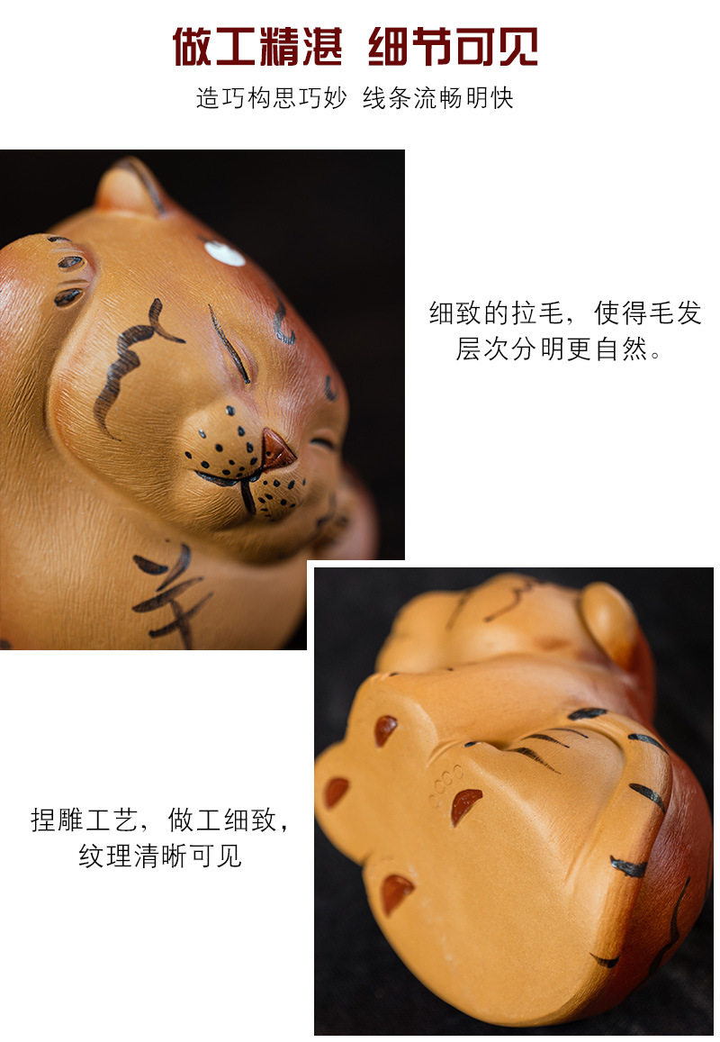 泥料:清水泥、段泥、白泥、黑泥【舒展虎】規格:長度:11.5厘米;寬度:4.7厘米;高度:5.65厘米。底款:娟亮紫砂