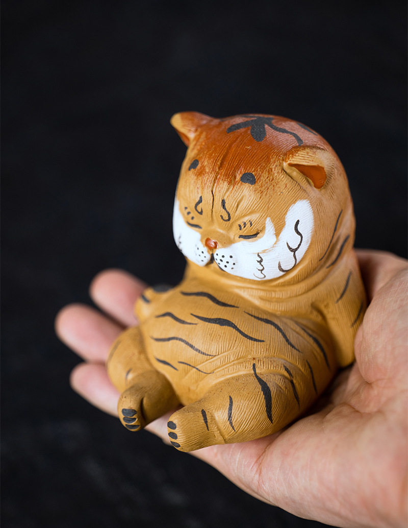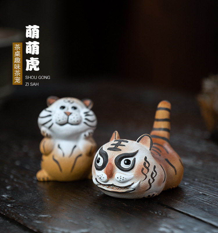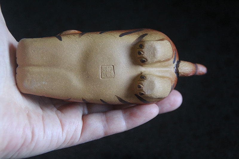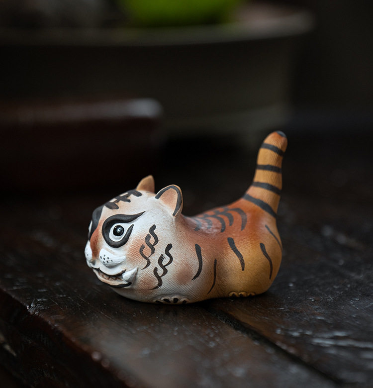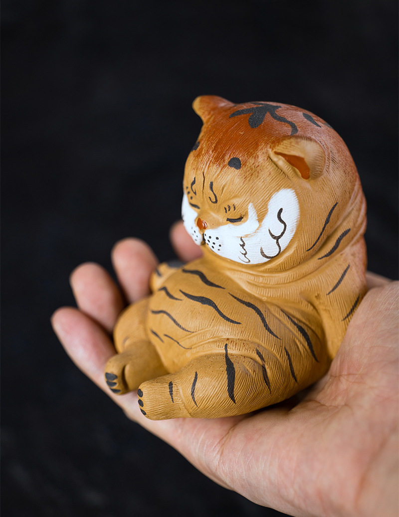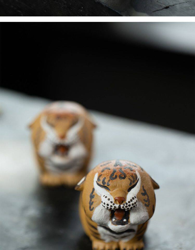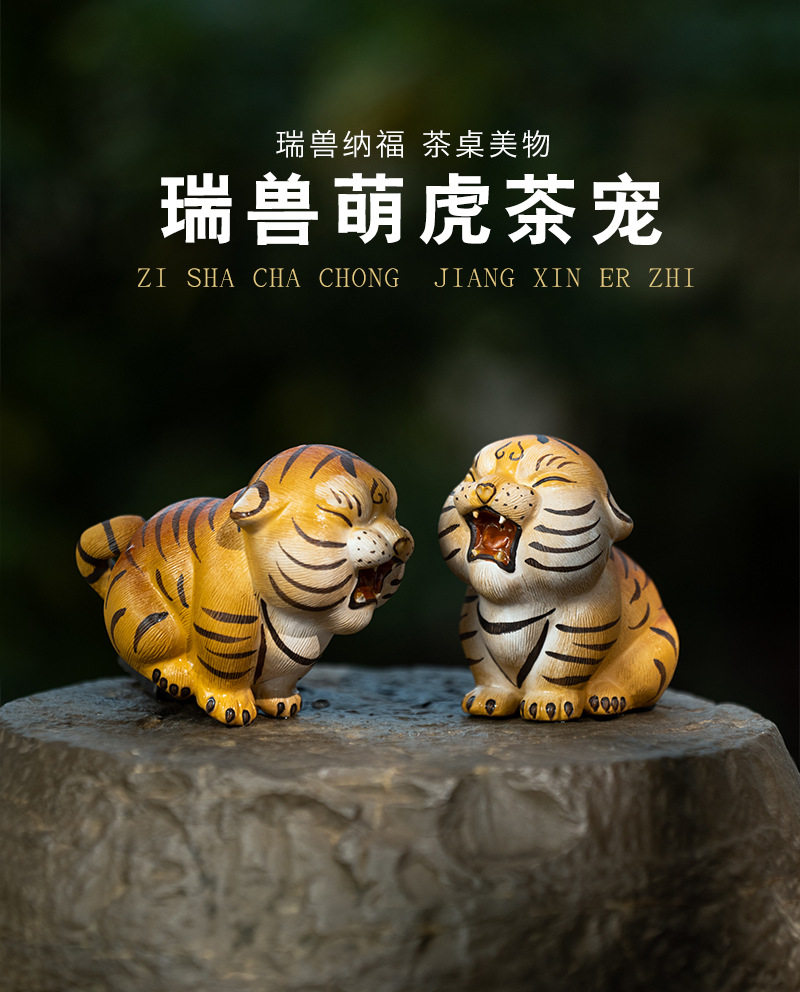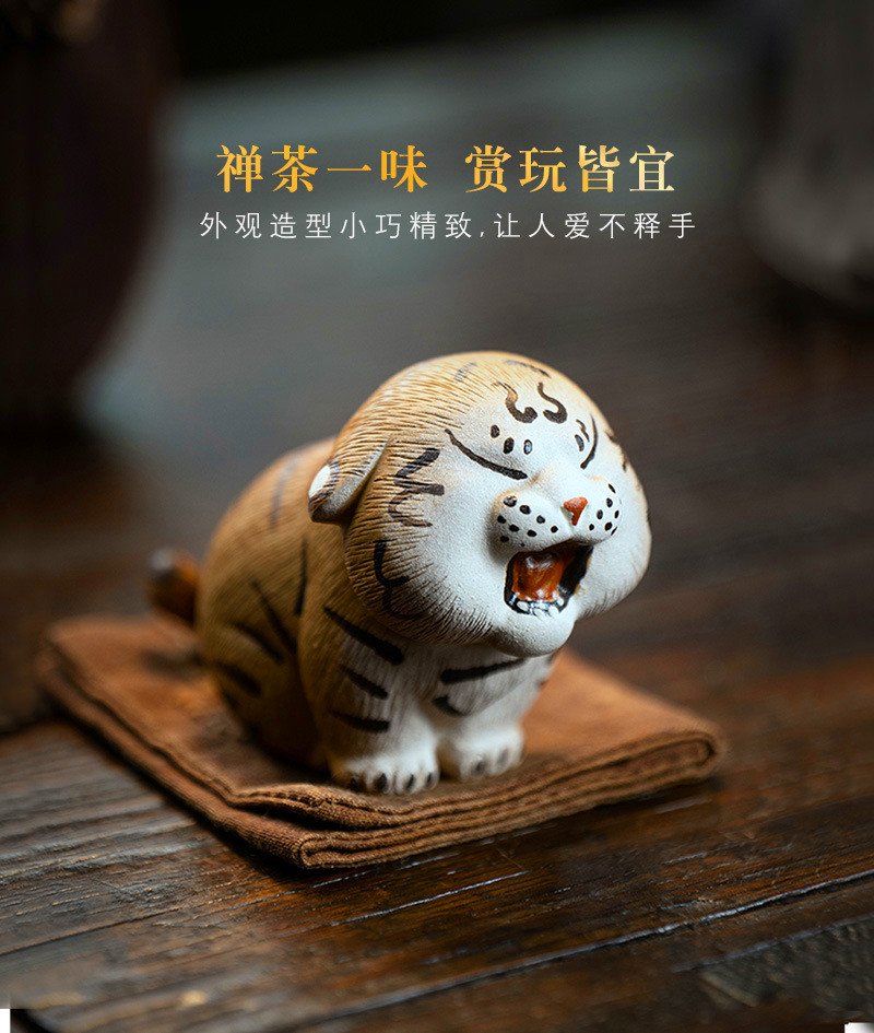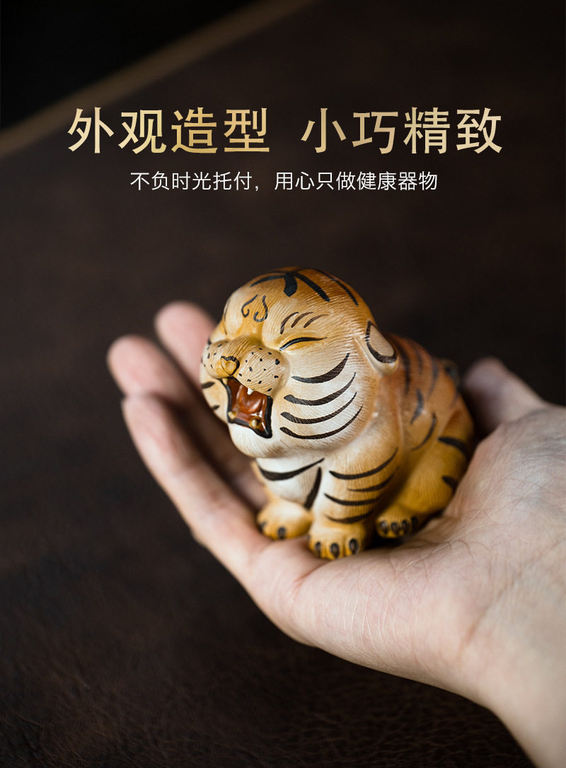 泥料:清水泥、段泥、白泥、黑泥【舒展虎】規格:長度:11.5厘米;寬度:4.7厘米;高度:5.65厘米。底款:娟亮紫砂