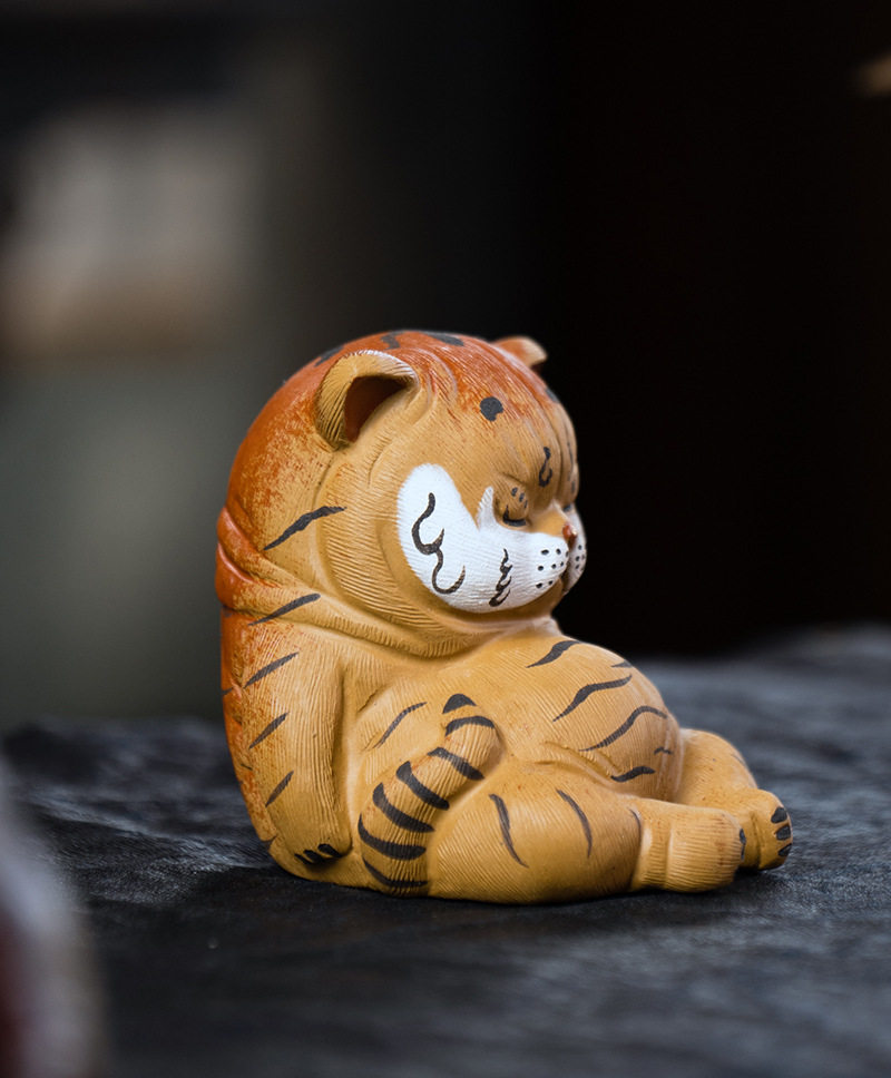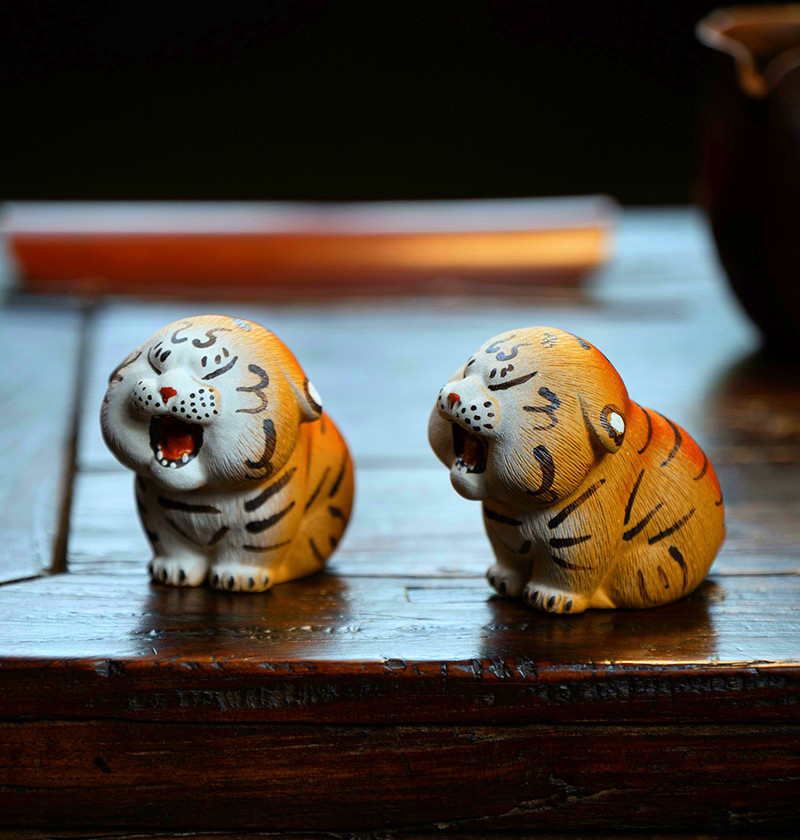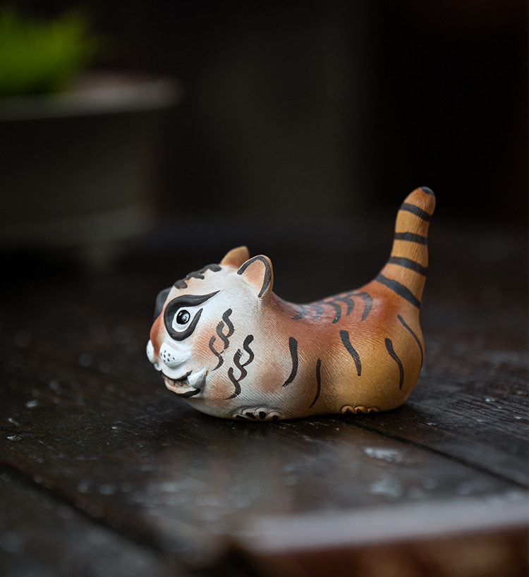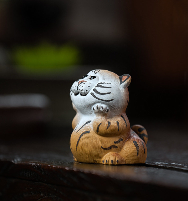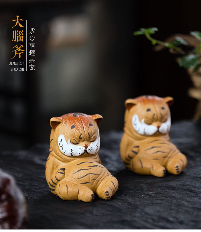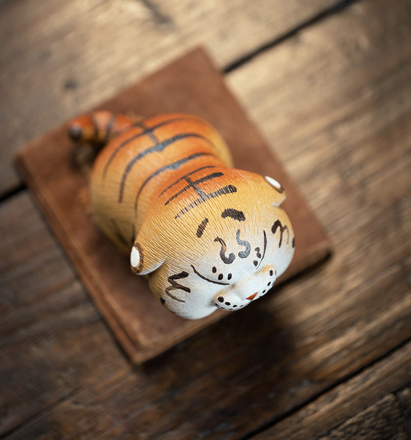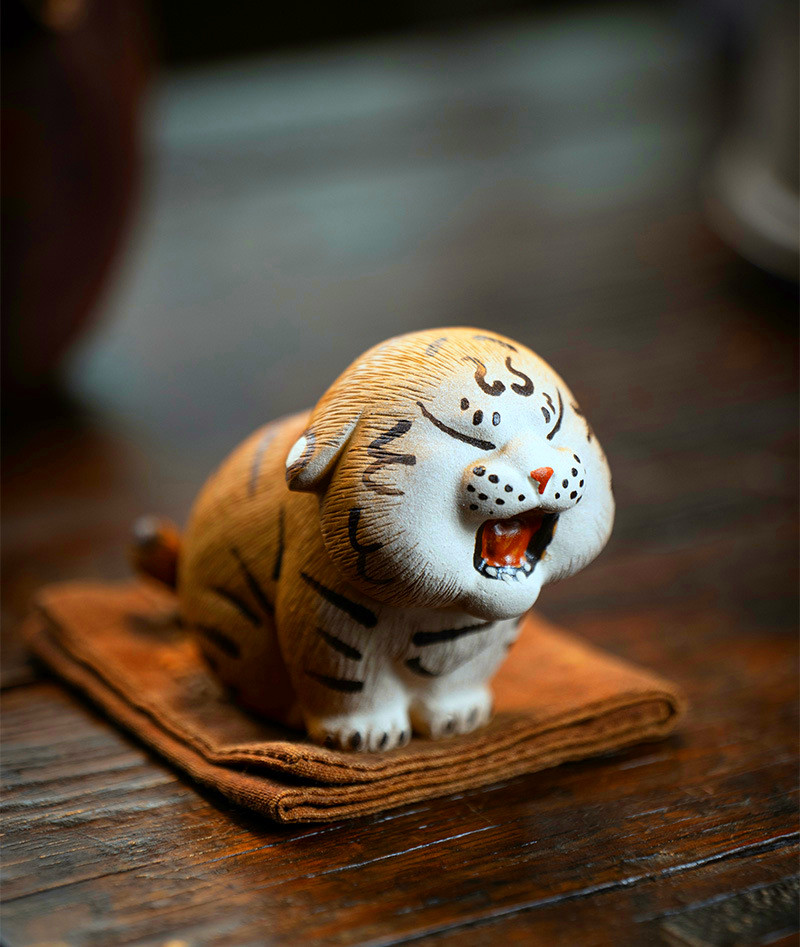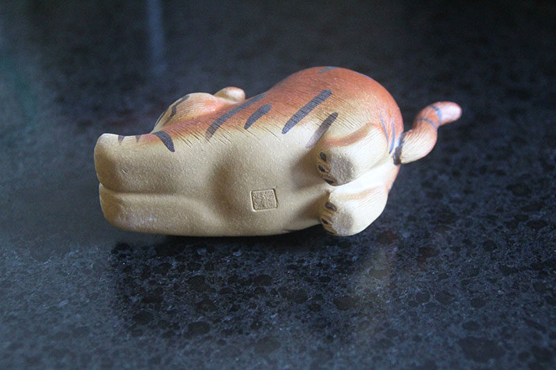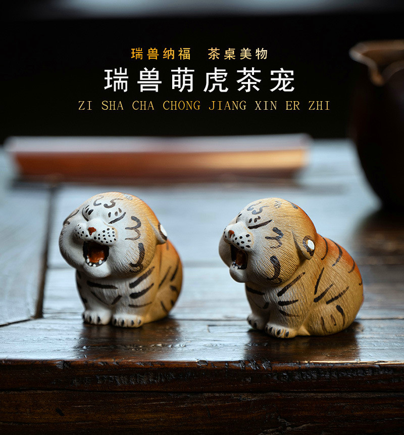 泥料:清水泥、段泥、白泥、黑泥【舒展虎】規格:長度:11.5厘米;寬度:4.7厘米;高度:5.65厘米。底款:娟亮紫砂