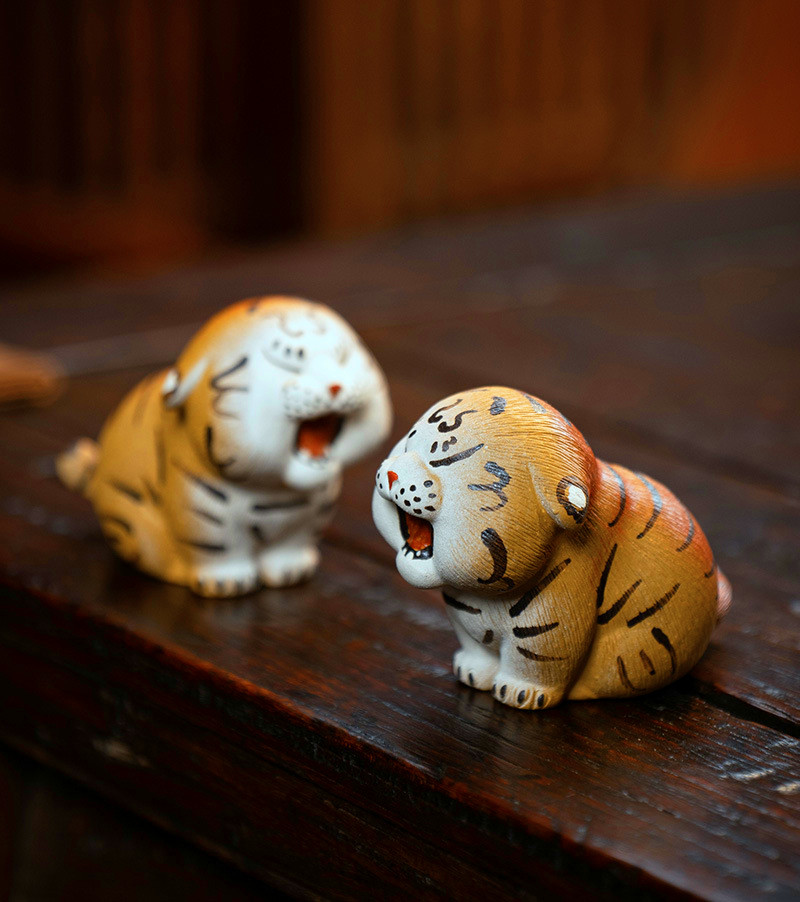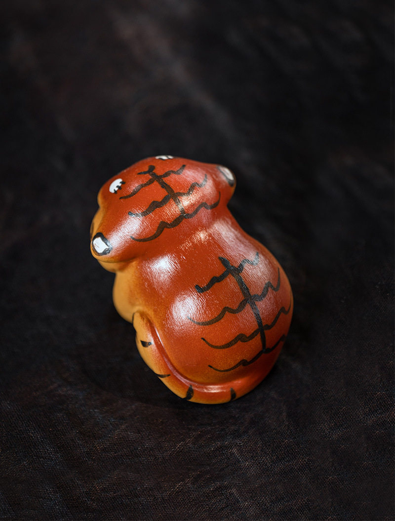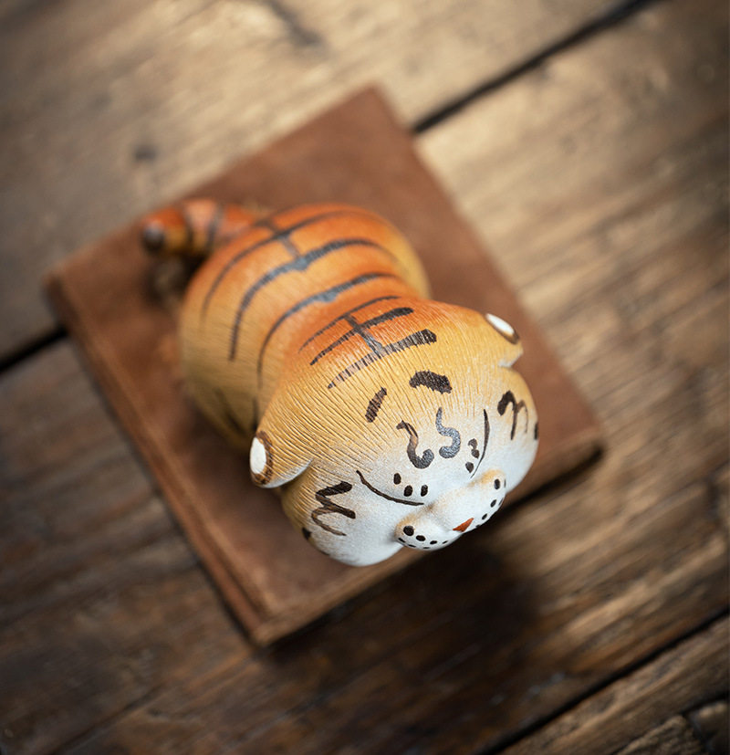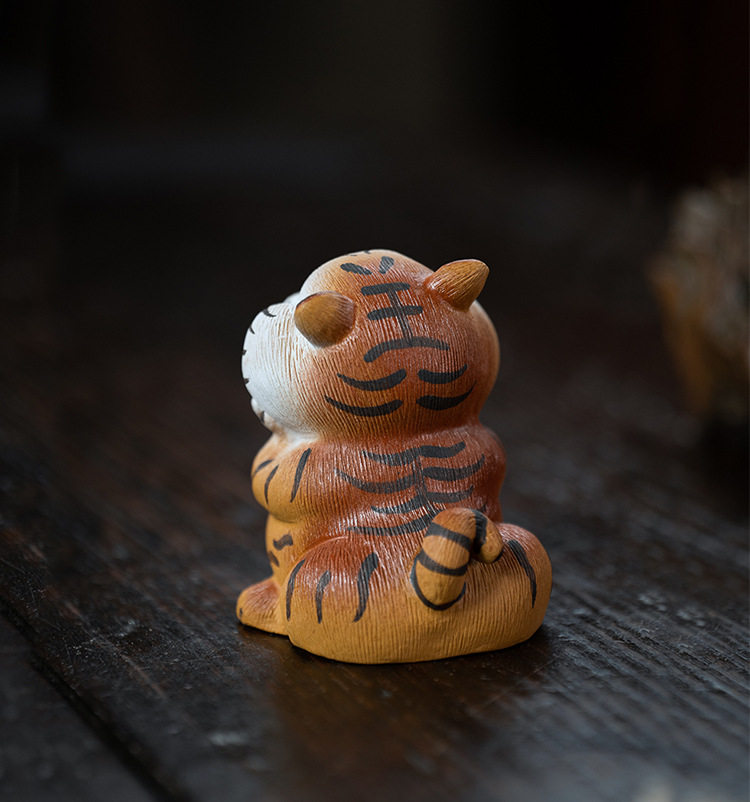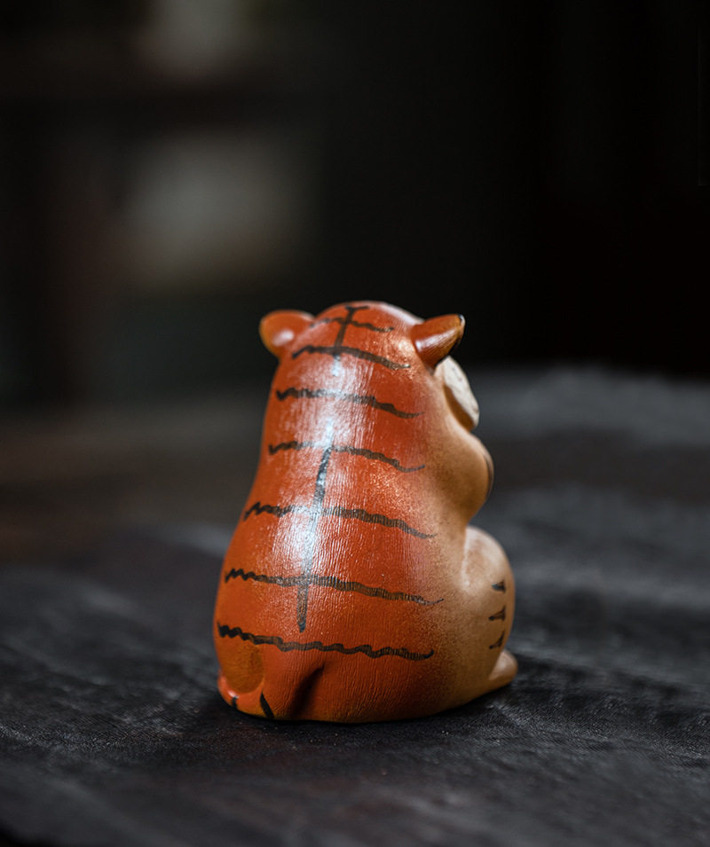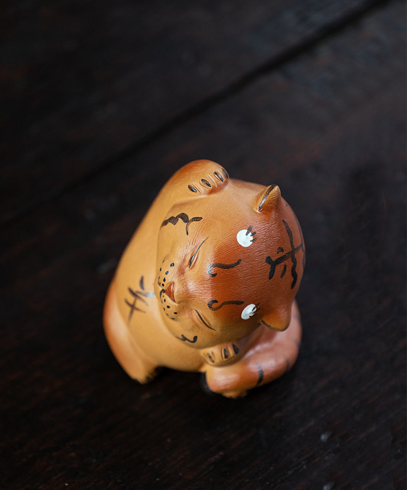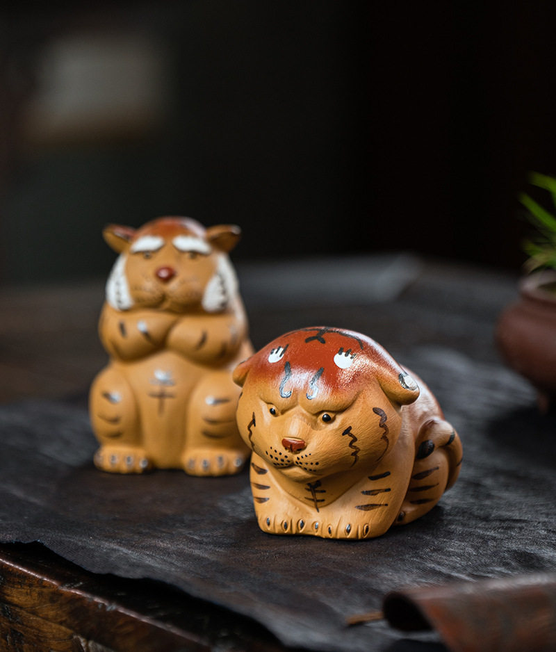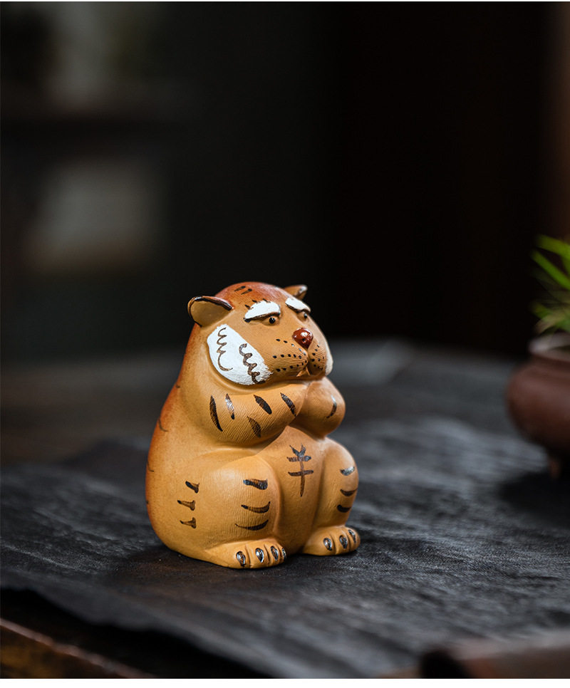 泥料:清水泥、段泥、白泥、黑泥【舒展虎】規格:長度:11.5厘米;寬度:4.7厘米;高度:5.65厘米。底款:娟亮紫砂