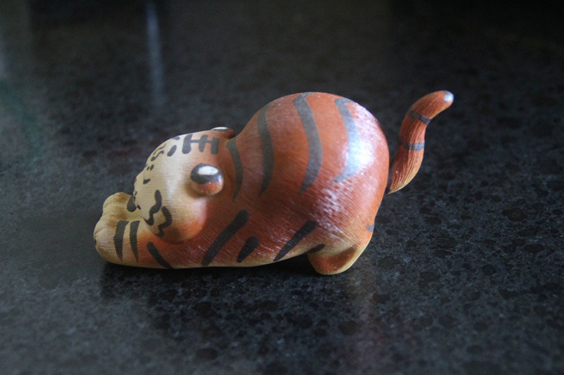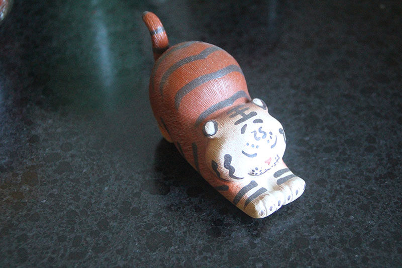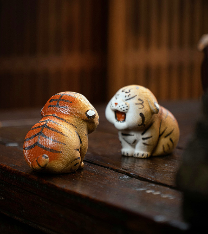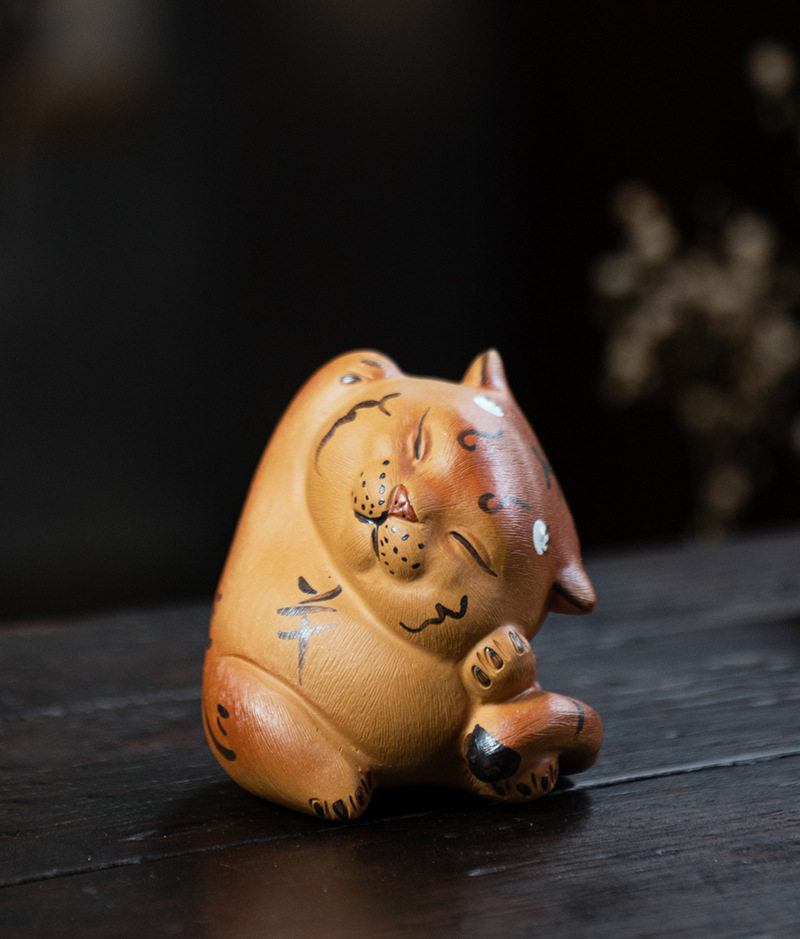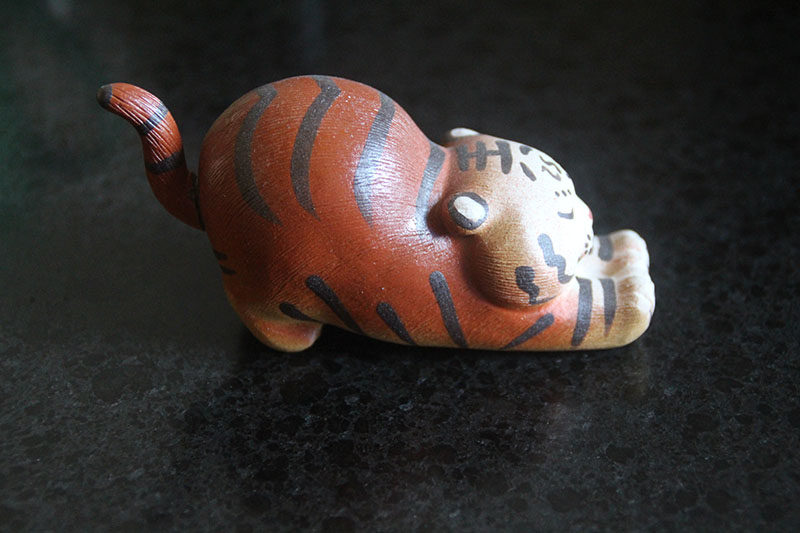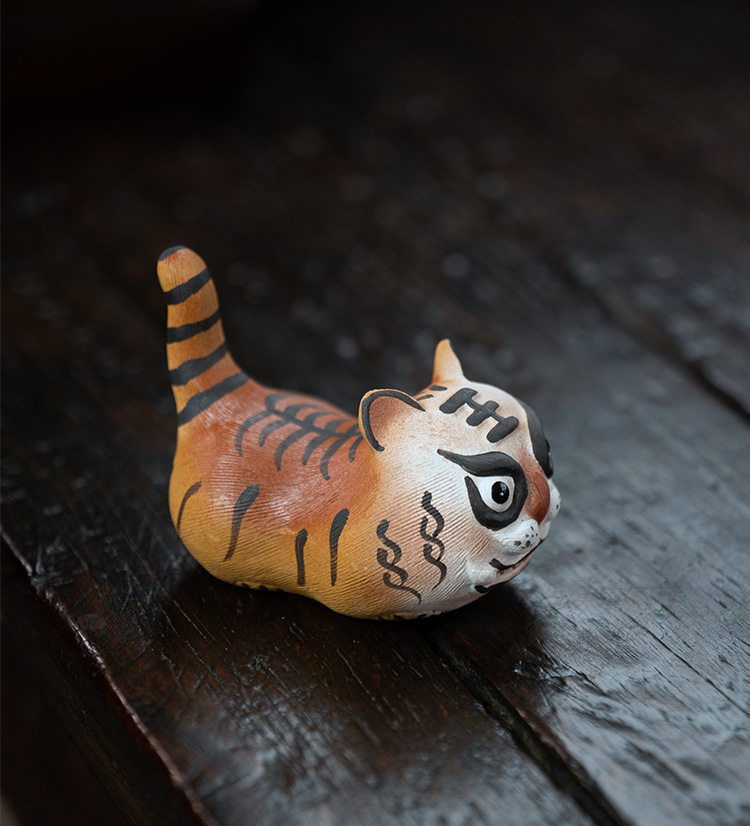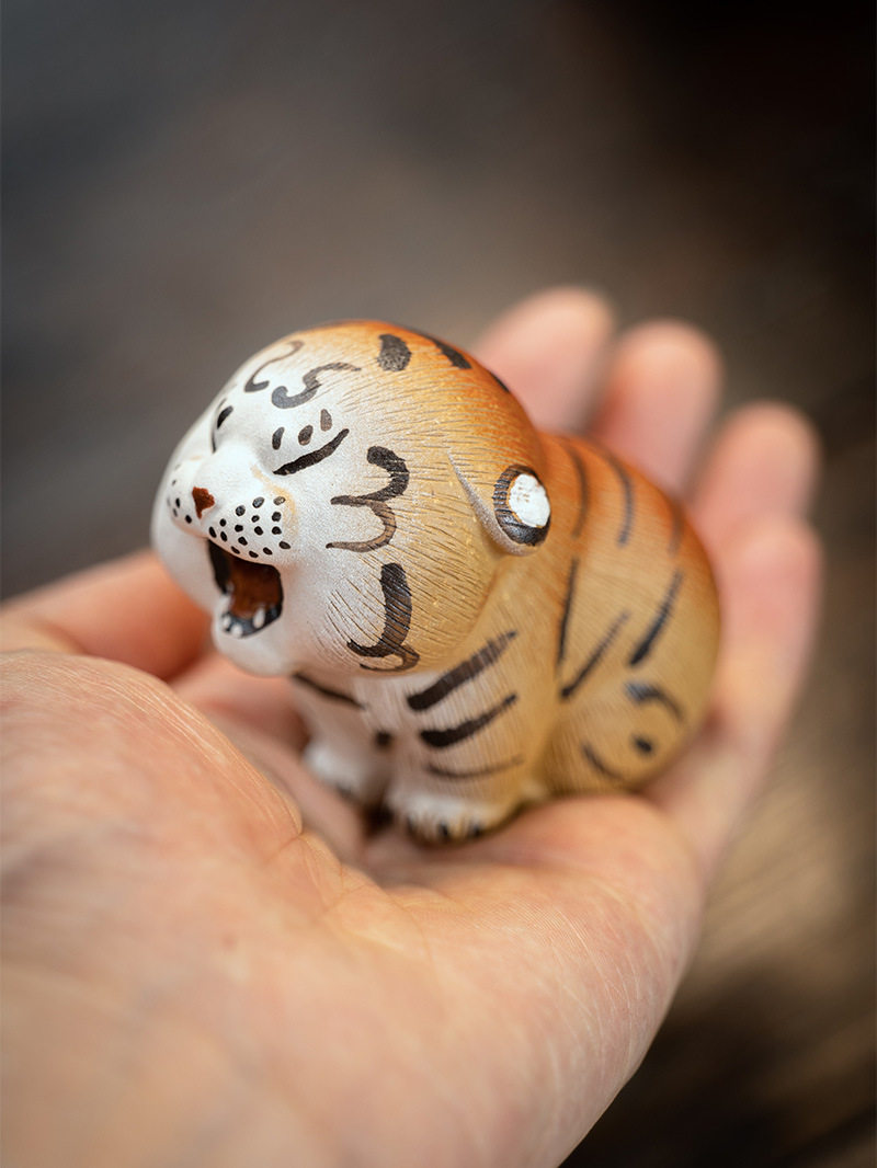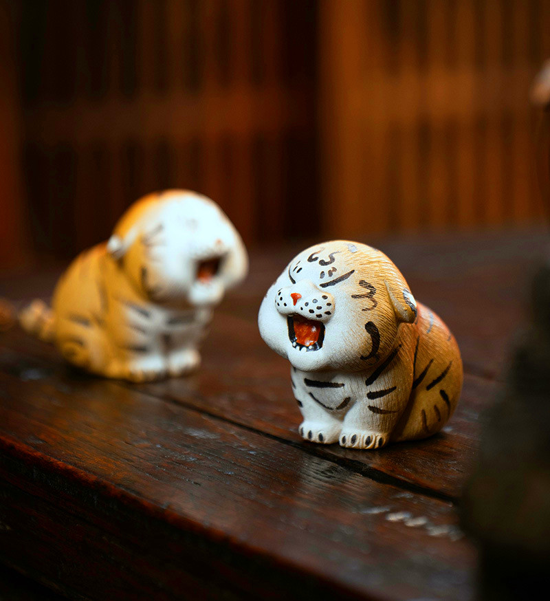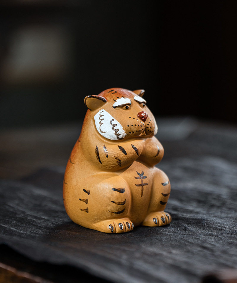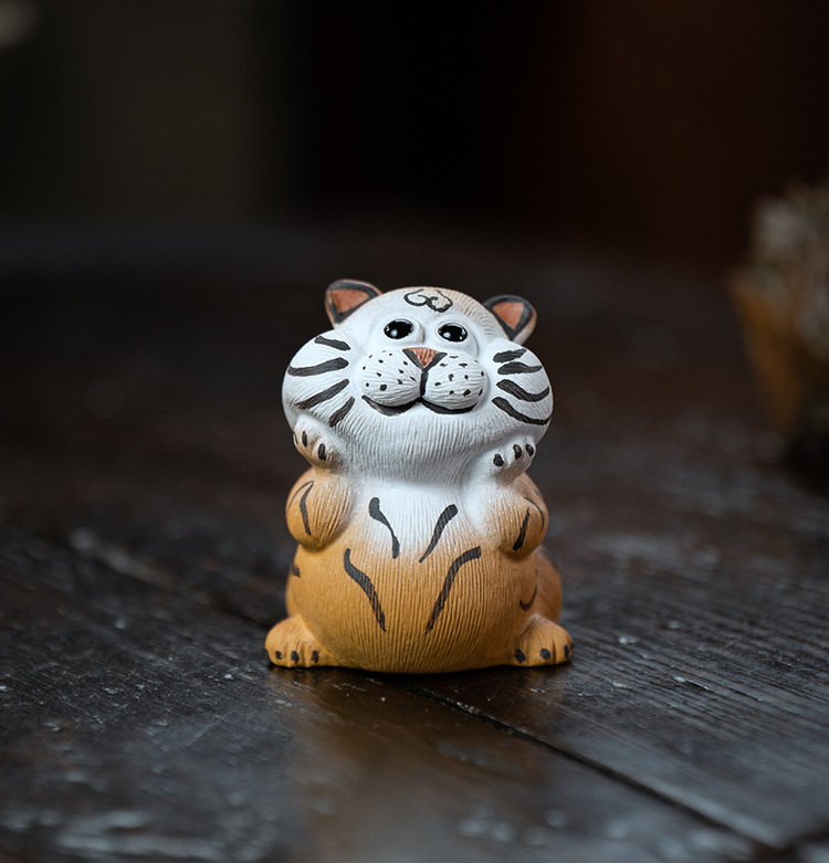 泥料:清水泥、段泥、白泥、黑泥【舒展虎】規格:長度:11.5厘米;寬度:4.7厘米;高度:5.65厘米。底款:娟亮紫砂