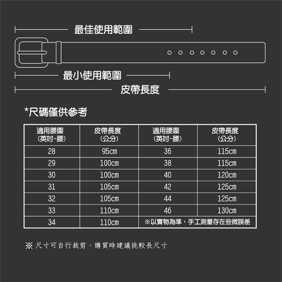 1.自動扣式腰帶,帶身尾部有自動扣卡榫,將其穿過釦頭固定即可。