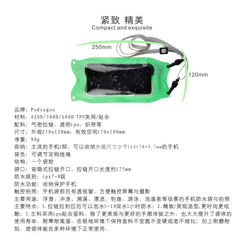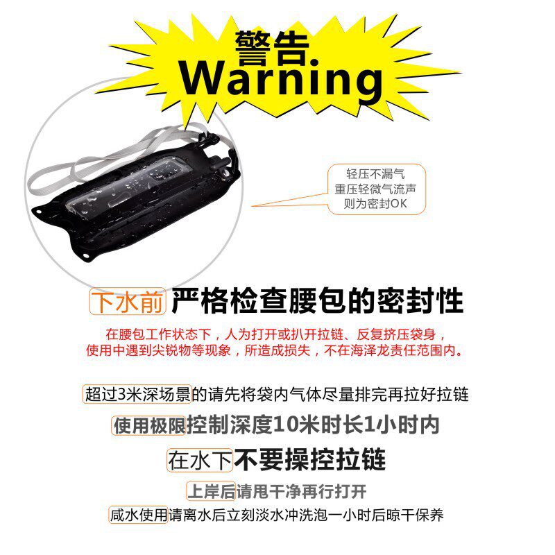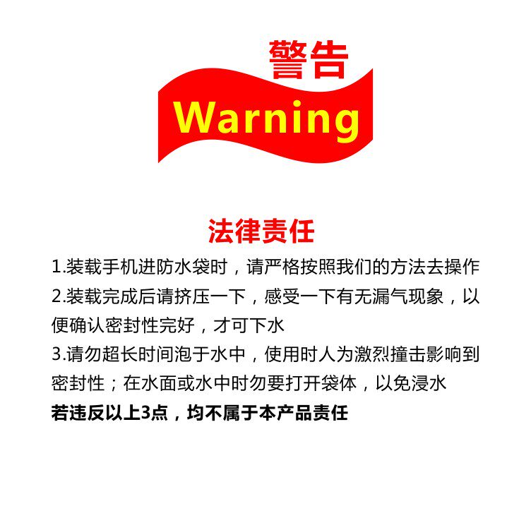 手機袋溫馨提示:【收到寶貝后務必要看下使用說明書】若拉鏈遇到比較大的阻力,請不要暴力拉扯,可以按照說明書提示操作,下水前務必要確認拉鏈已經拉到底,并且嚴密不透氣,在下水前用力擠一擠,看有沒有漏氣,沒漏氣才可以正常使用手機袋!!