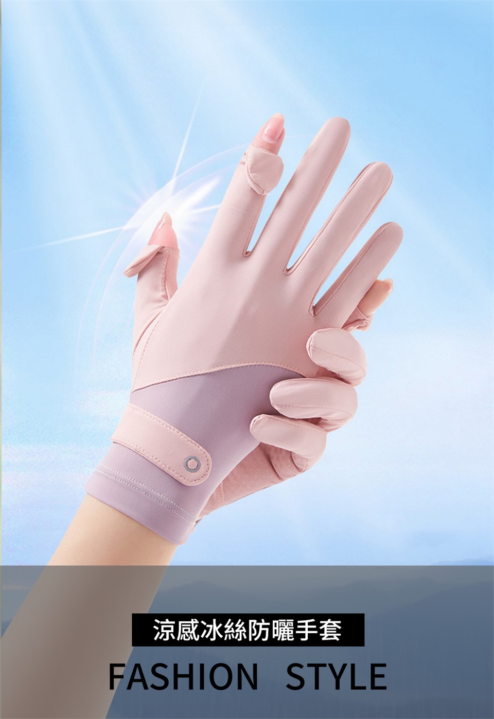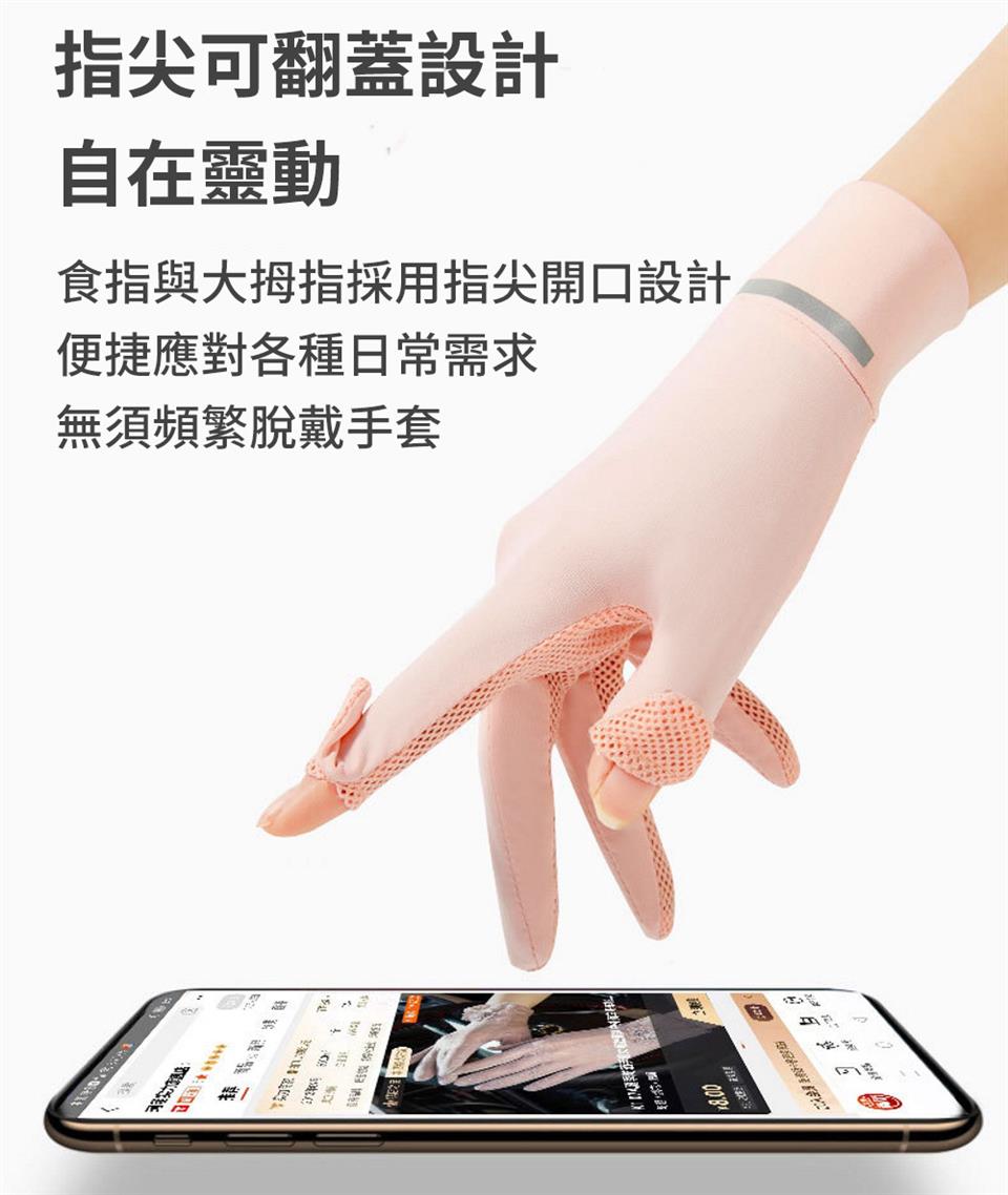 春夏戶外運動防曬透氣翻蓋露指冰絲手套