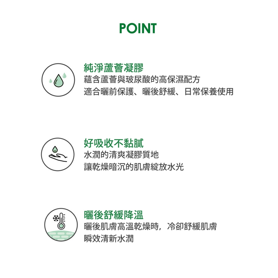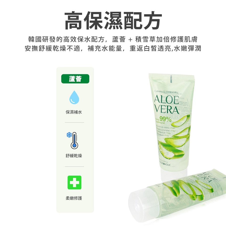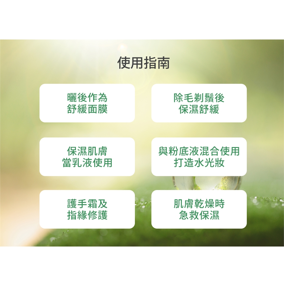 ▲韓國高保濕配方,99%純淨蘆薈成分舒緩乾燥肌膚,重現保水透亮