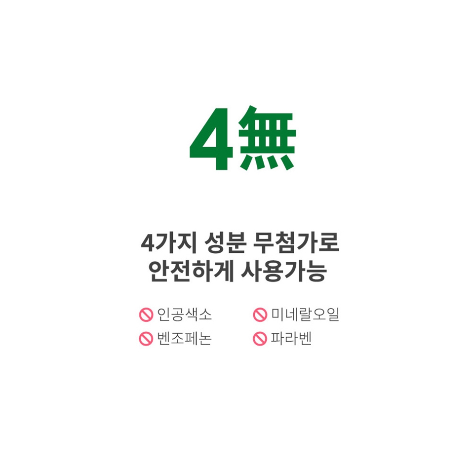 安心宣言:無添加礦物油、人工色素、二苯甲酮、PARABENS防腐劑。