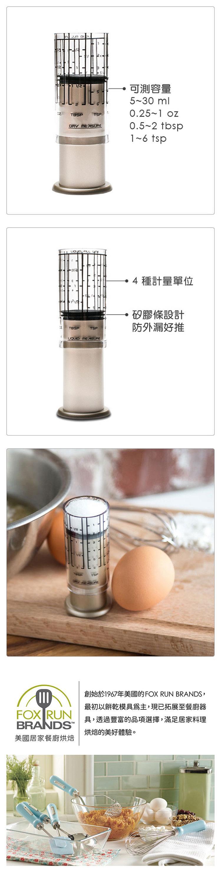 2. 可測容量 5~30 ml;0.25~1 oz;0.5~2 tbsp;1~6 tsp。