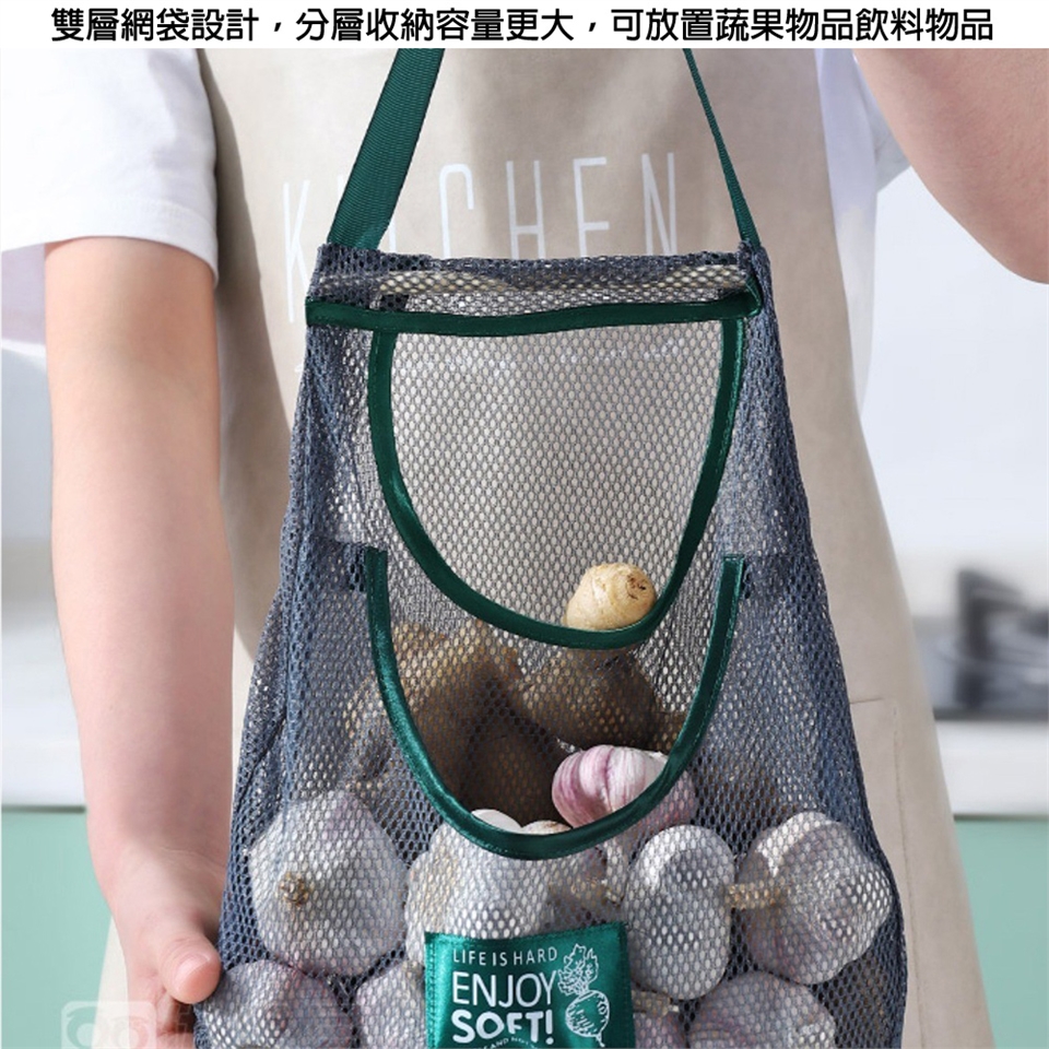 ■雙層網袋設計,分層收納容量更大,可放置蔬果物品飲料物品。