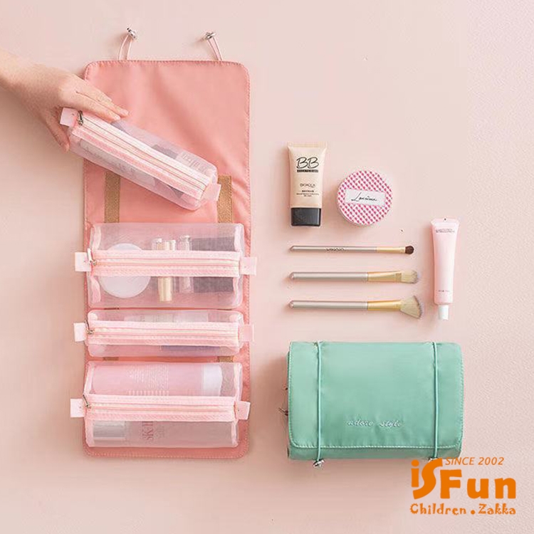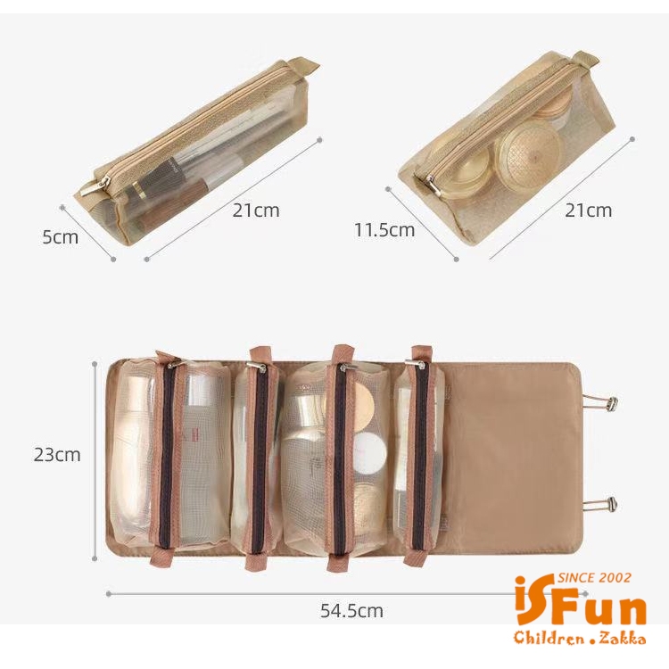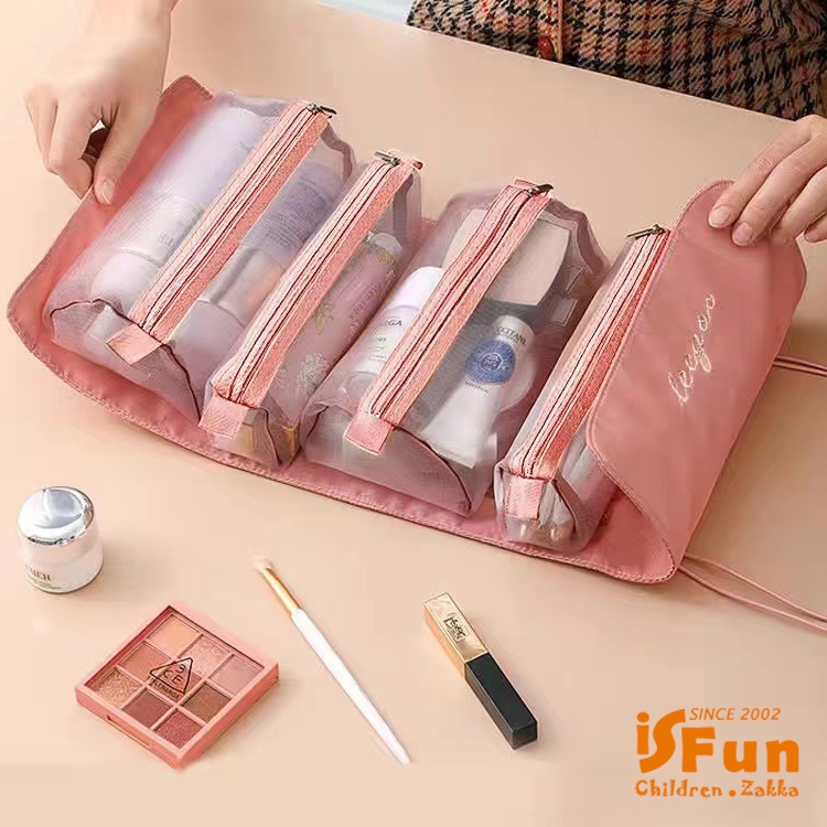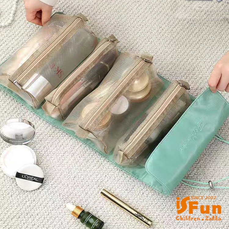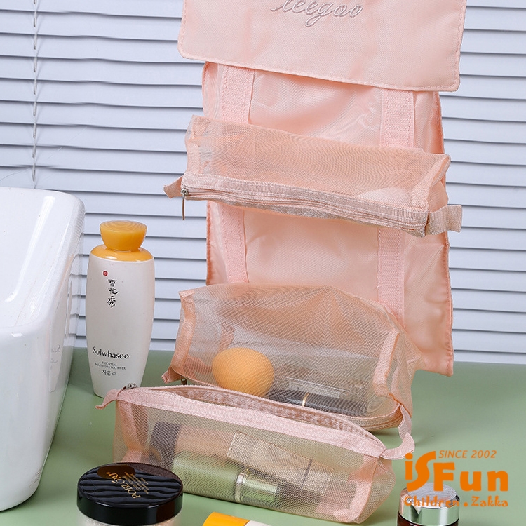 透明網紗盥洗化妝收納包,可自由分離四合一的小包,
