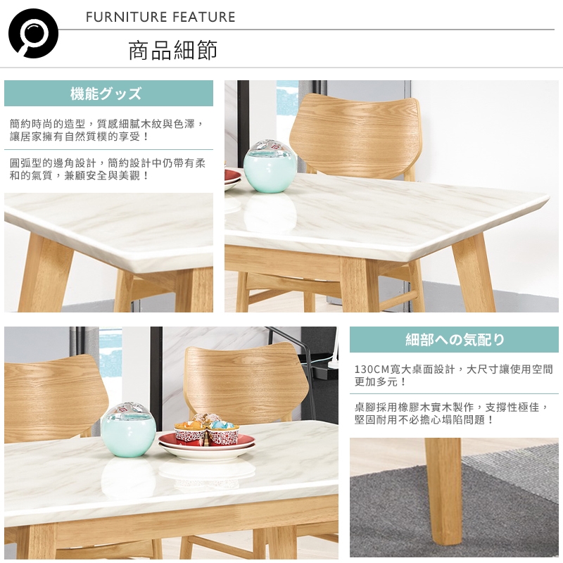 一桌四椅一次購齊!不用費心搭配,更具整體感!