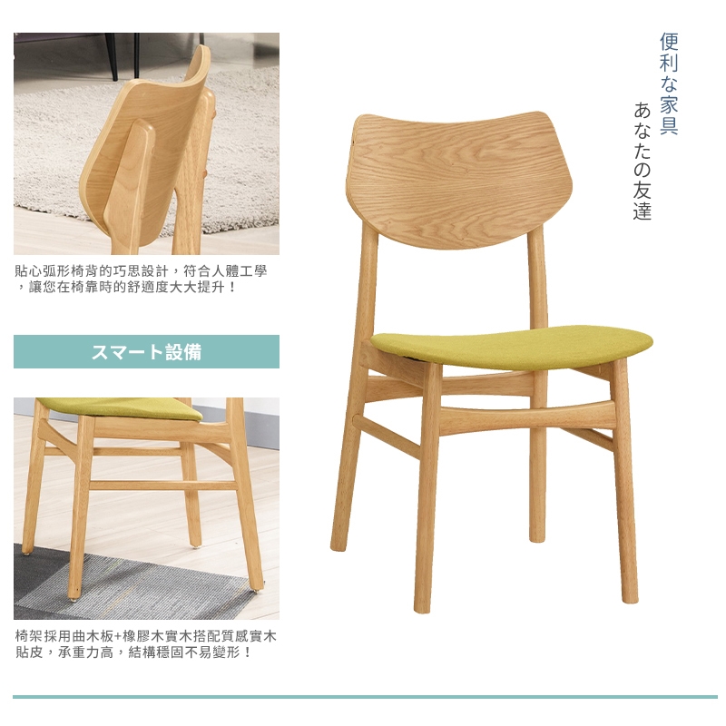 椅架採用曲木板+橡膠木實木搭配質感實木貼皮,承重力高,結構穩固不易變形!