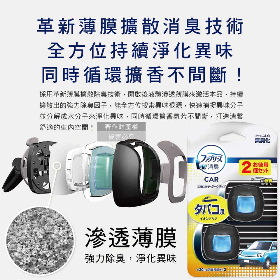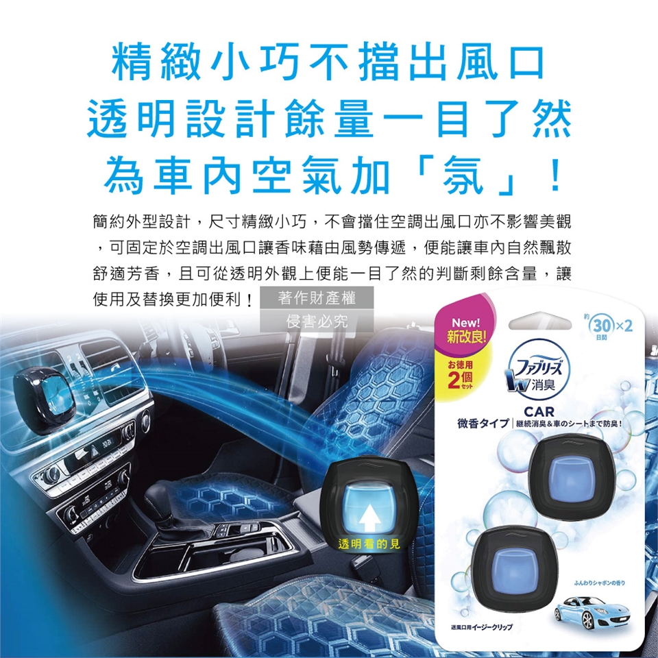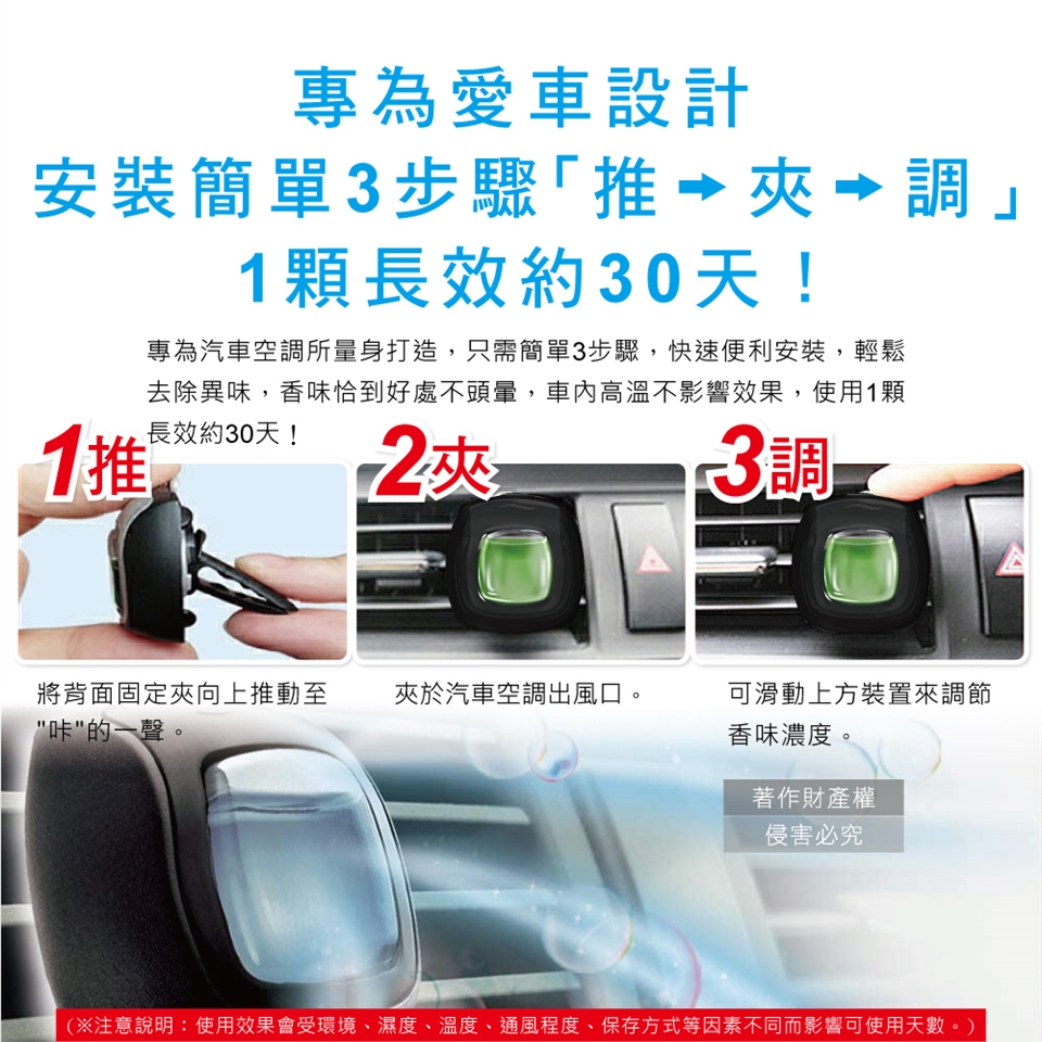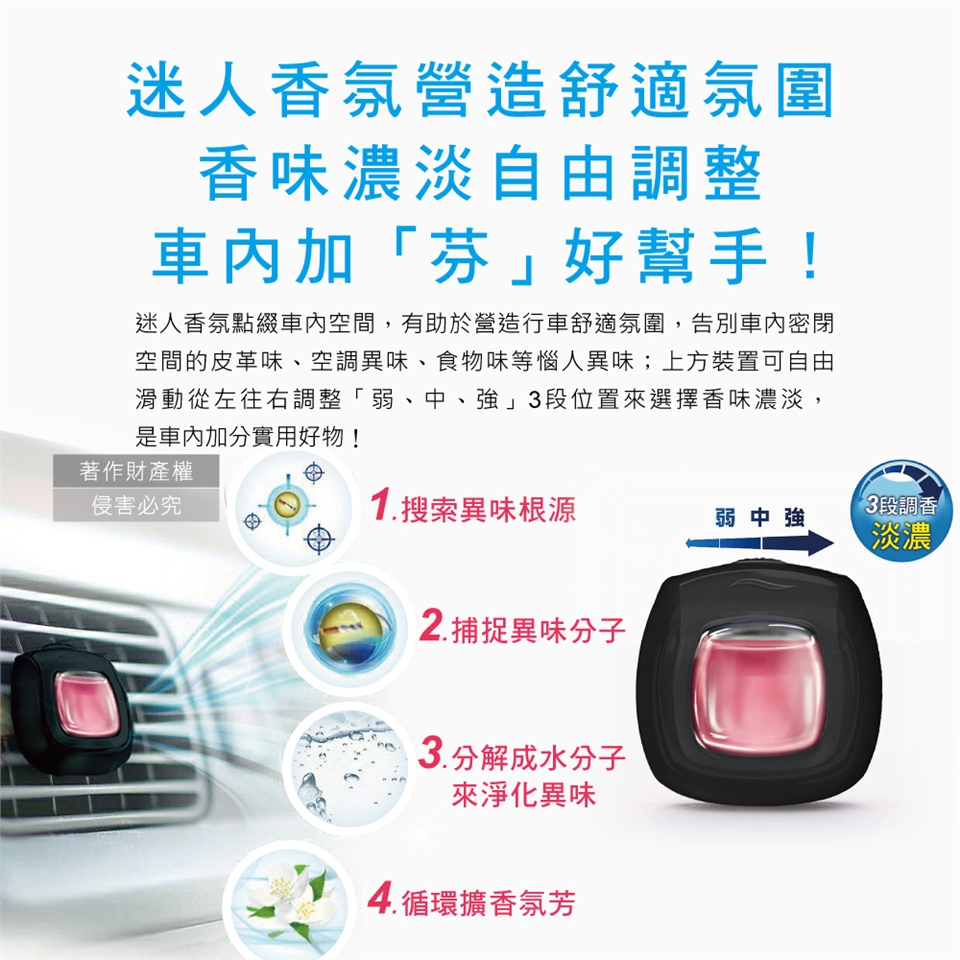 ●品名:汽車空調出風口專用W消臭香氛夾式空氣芳香劑