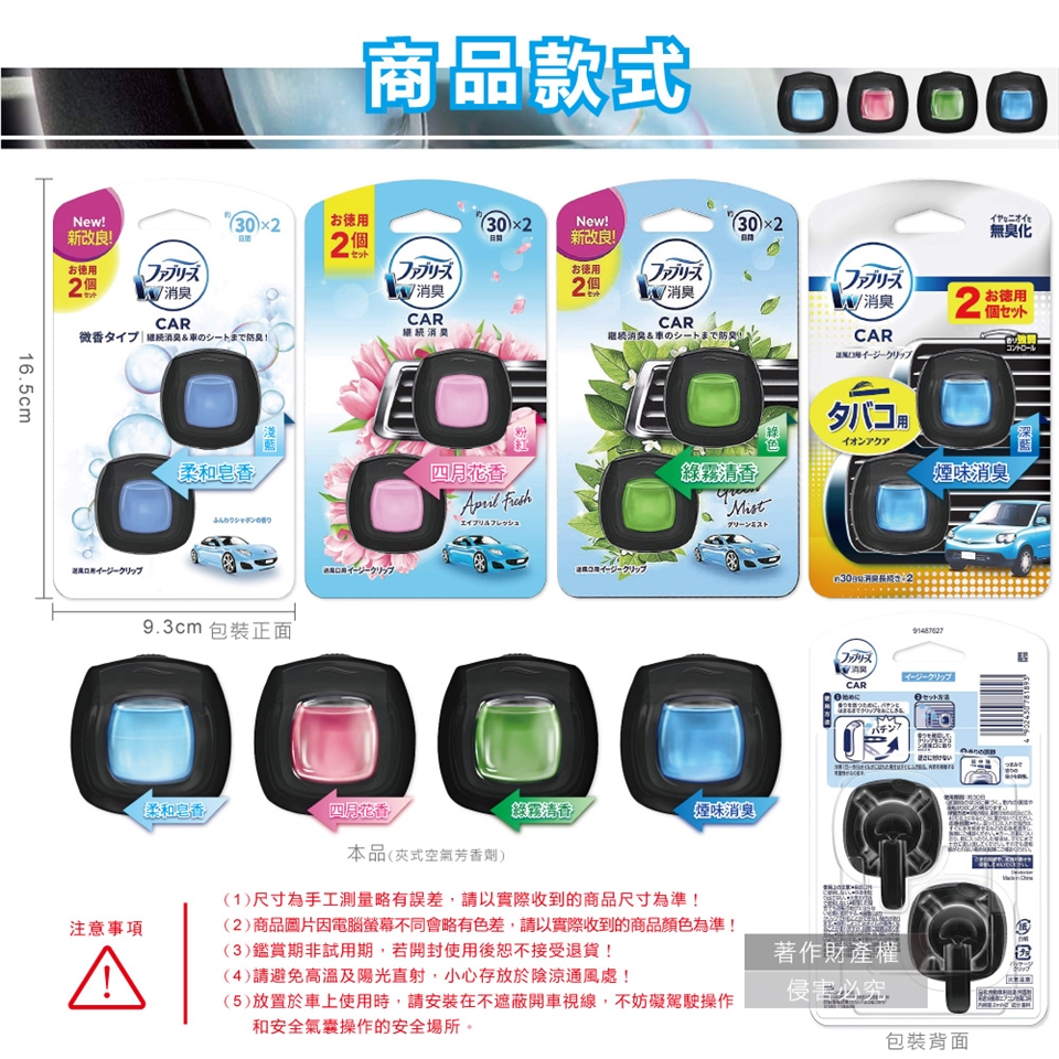 ●香味:柔和皂香、四月花香、綠霧清香、煙味消臭