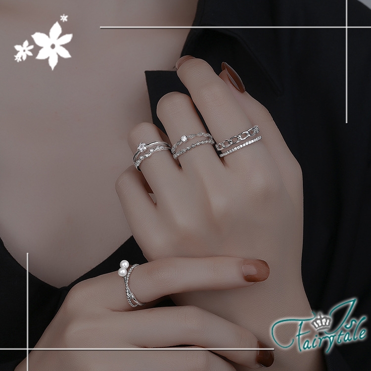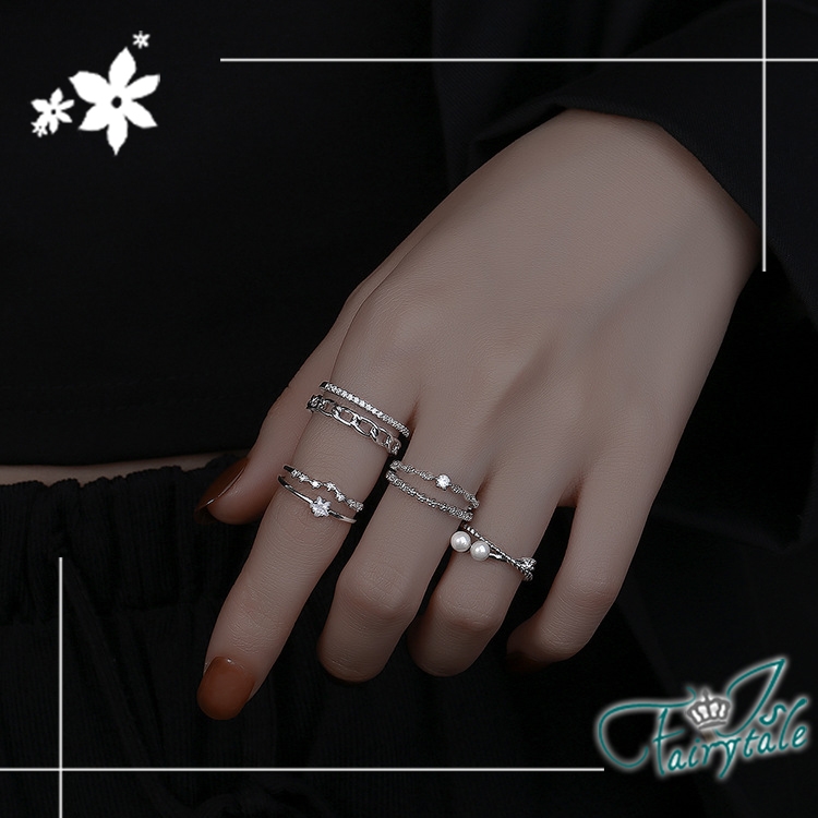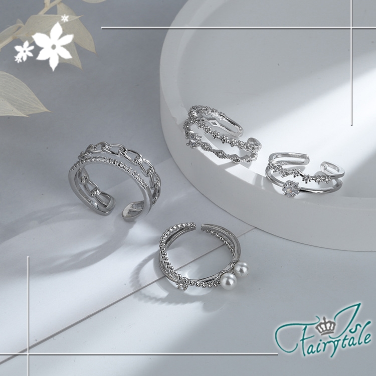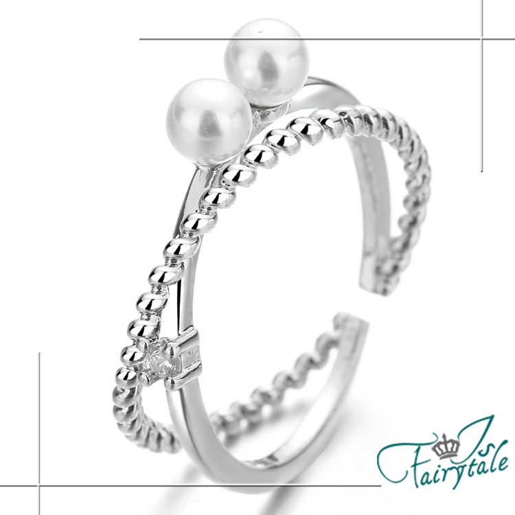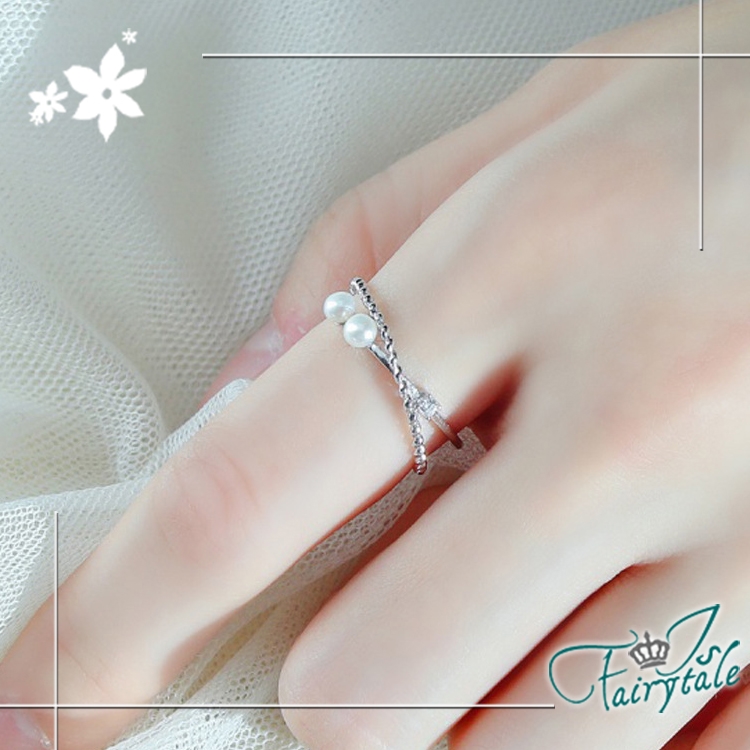 甜美小碎鑽十字交錯珍珠,典雅素色細彈性戒指環,