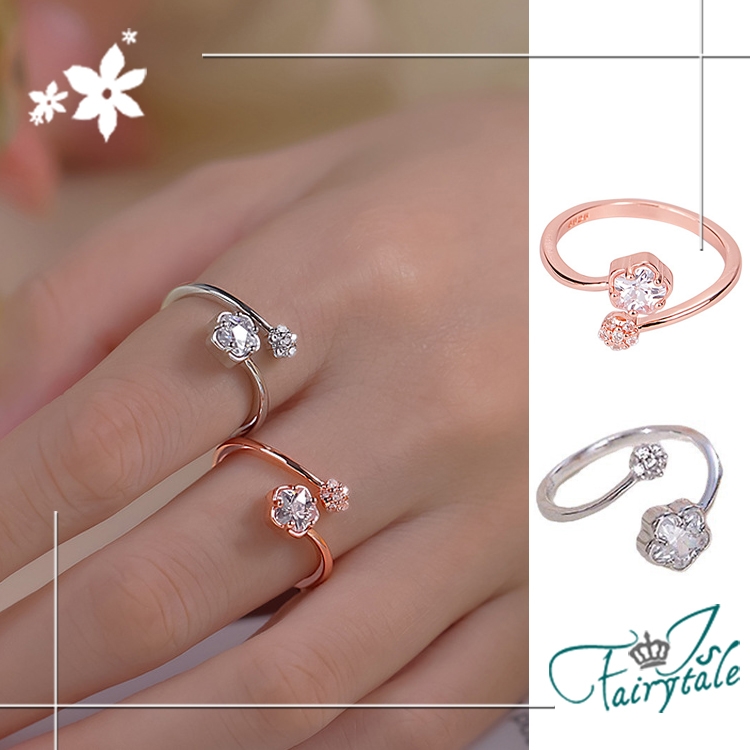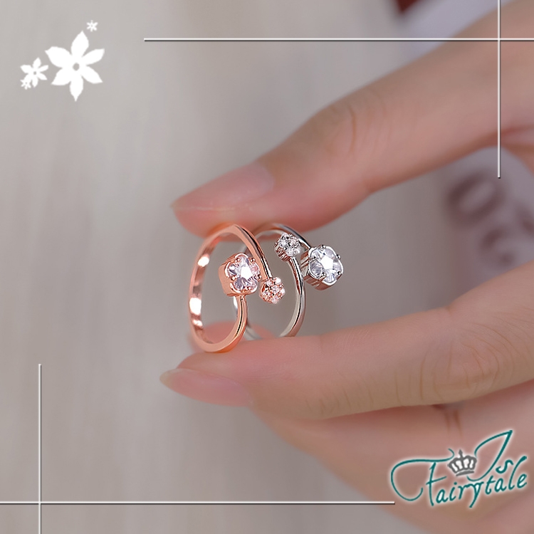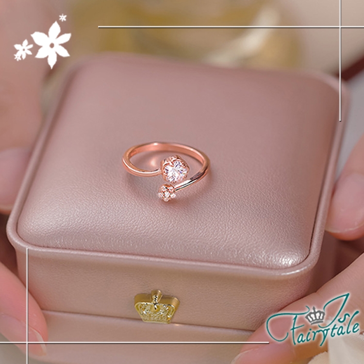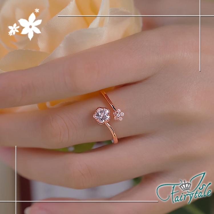 清新森林系櫻花水鑽,典雅素色細彈性戒指環,