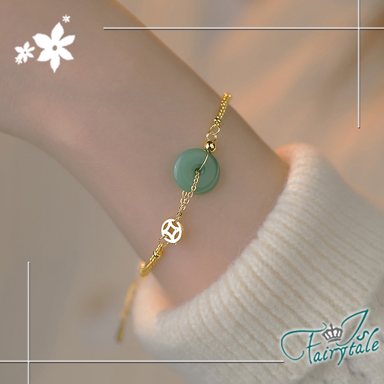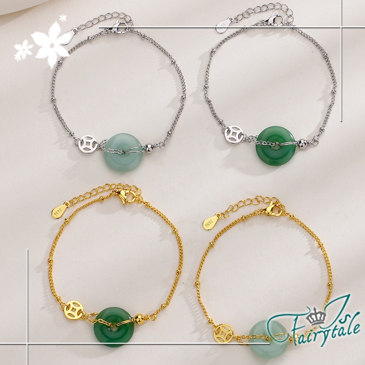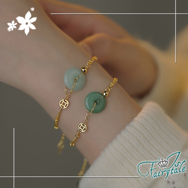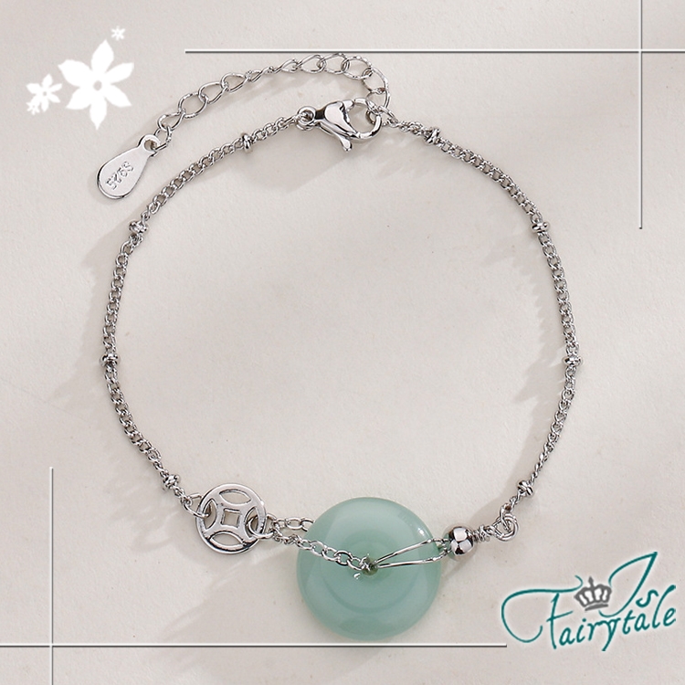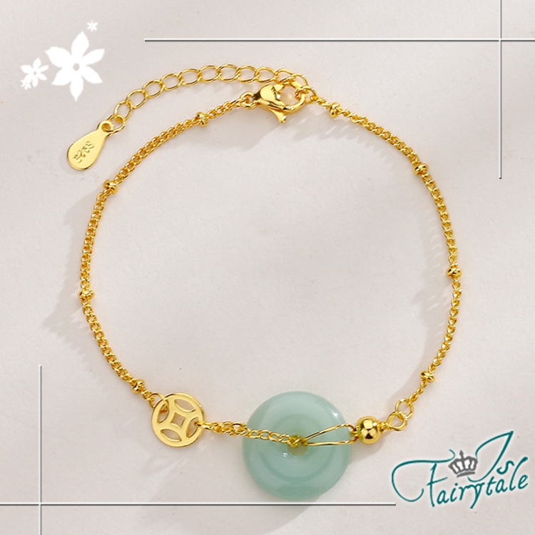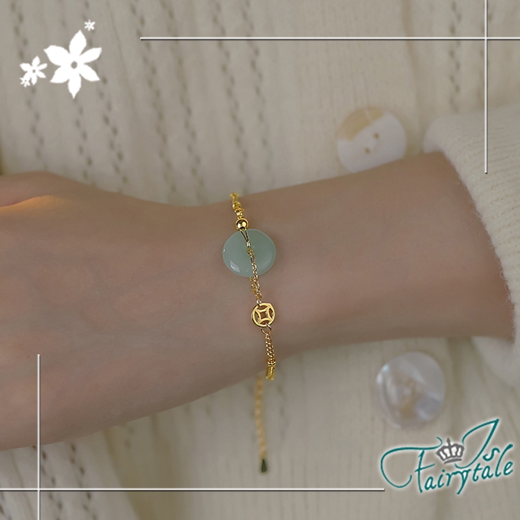 中國風格轉運手鍊,淺綠和田玉銅錢造型,