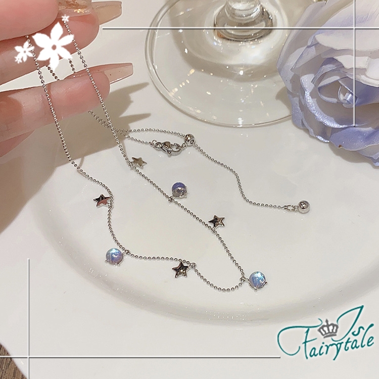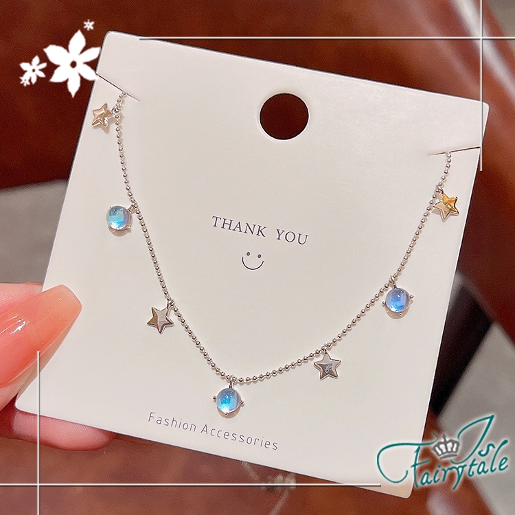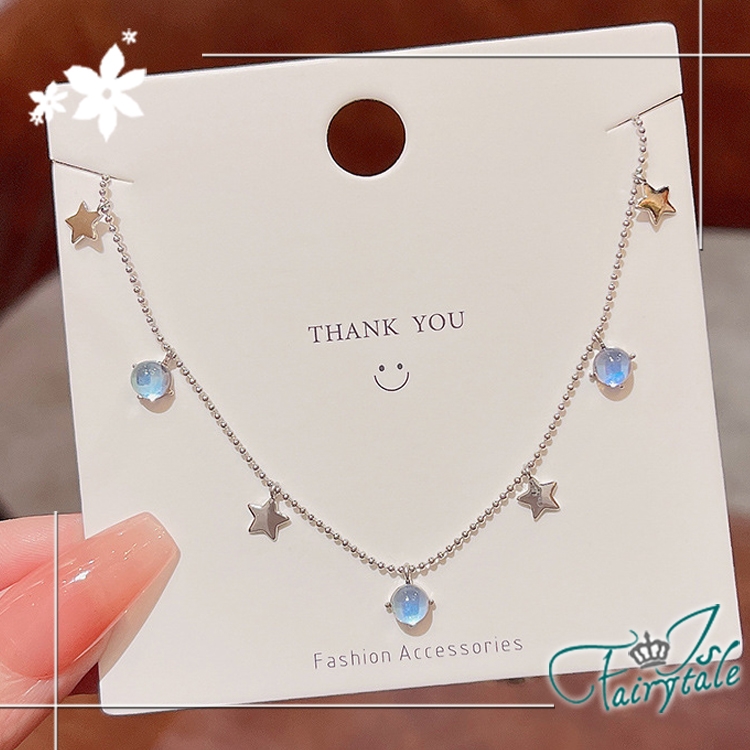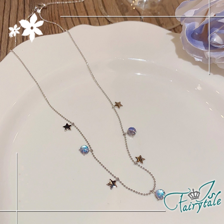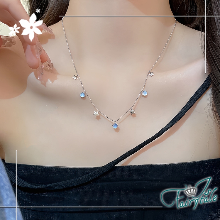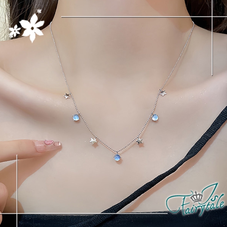 淡藍月光石與星星交錯,清新典雅風格時尚搭配,