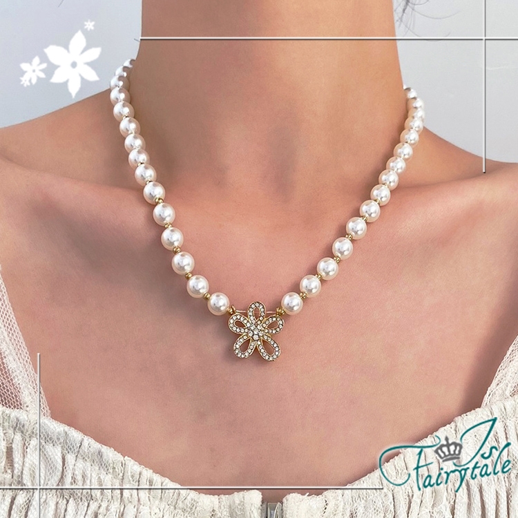 巴洛克復古珍珠串鍊,法式輕奢鏤空花漾造型,
