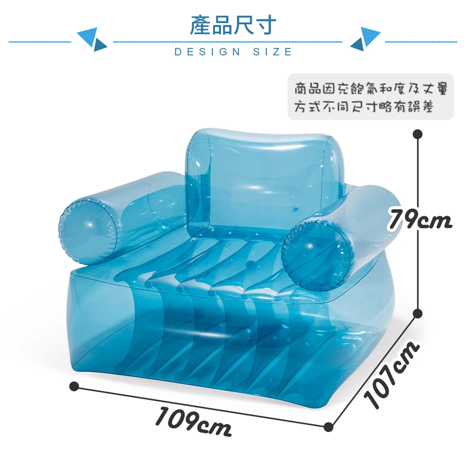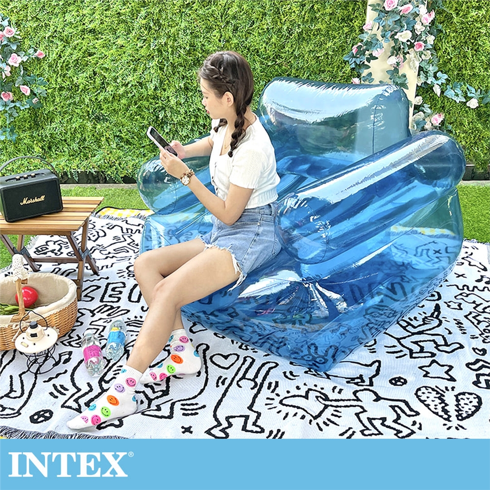 INTEX 藍色透明充氣扶手椅(66503NP)