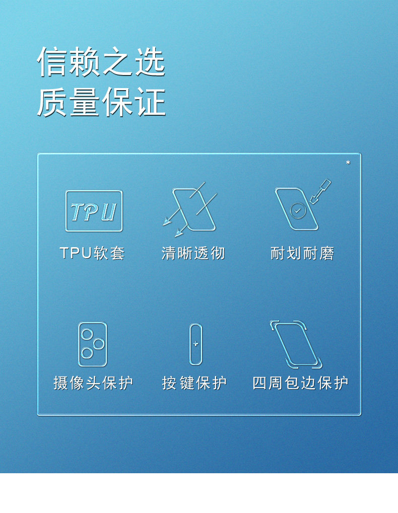 ●環保材料制作,清晰透明,耐磨耐用。柔韌賦有彈性,有效的緩沖撞擊力,更好的保護。