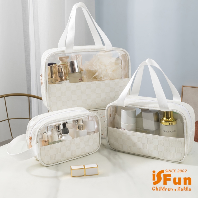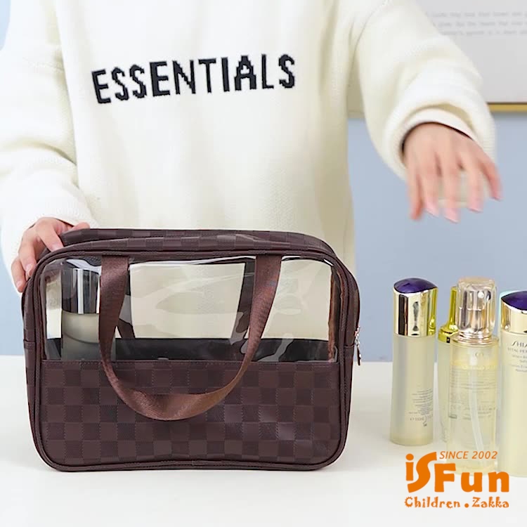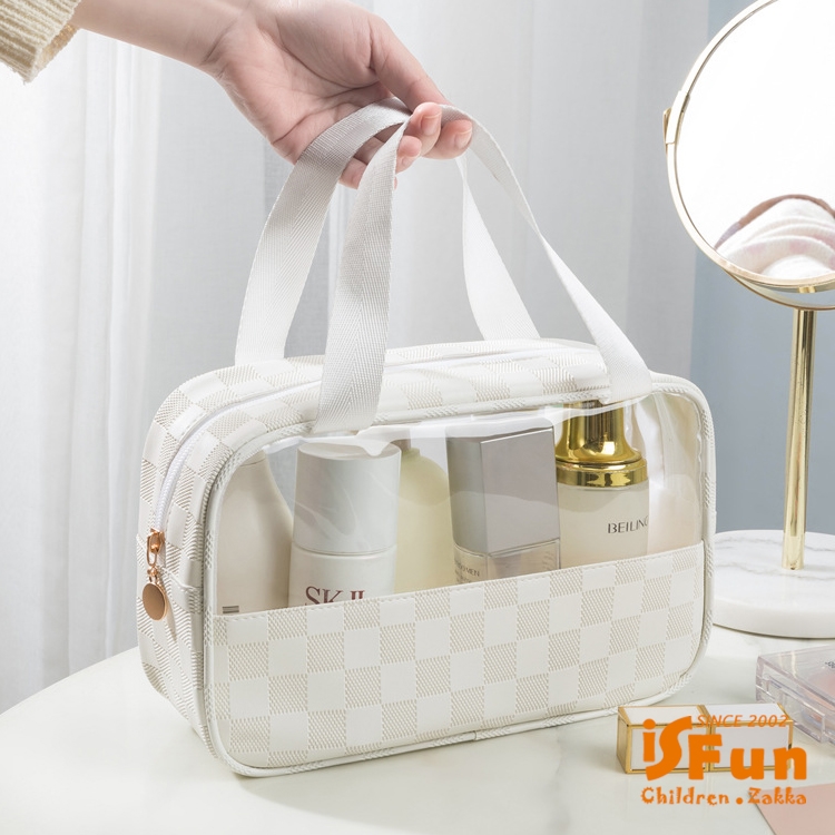 外出旅行也可當盥洗包,簡約手提功能時尚百搭,放入可清楚知道內裡物品,
