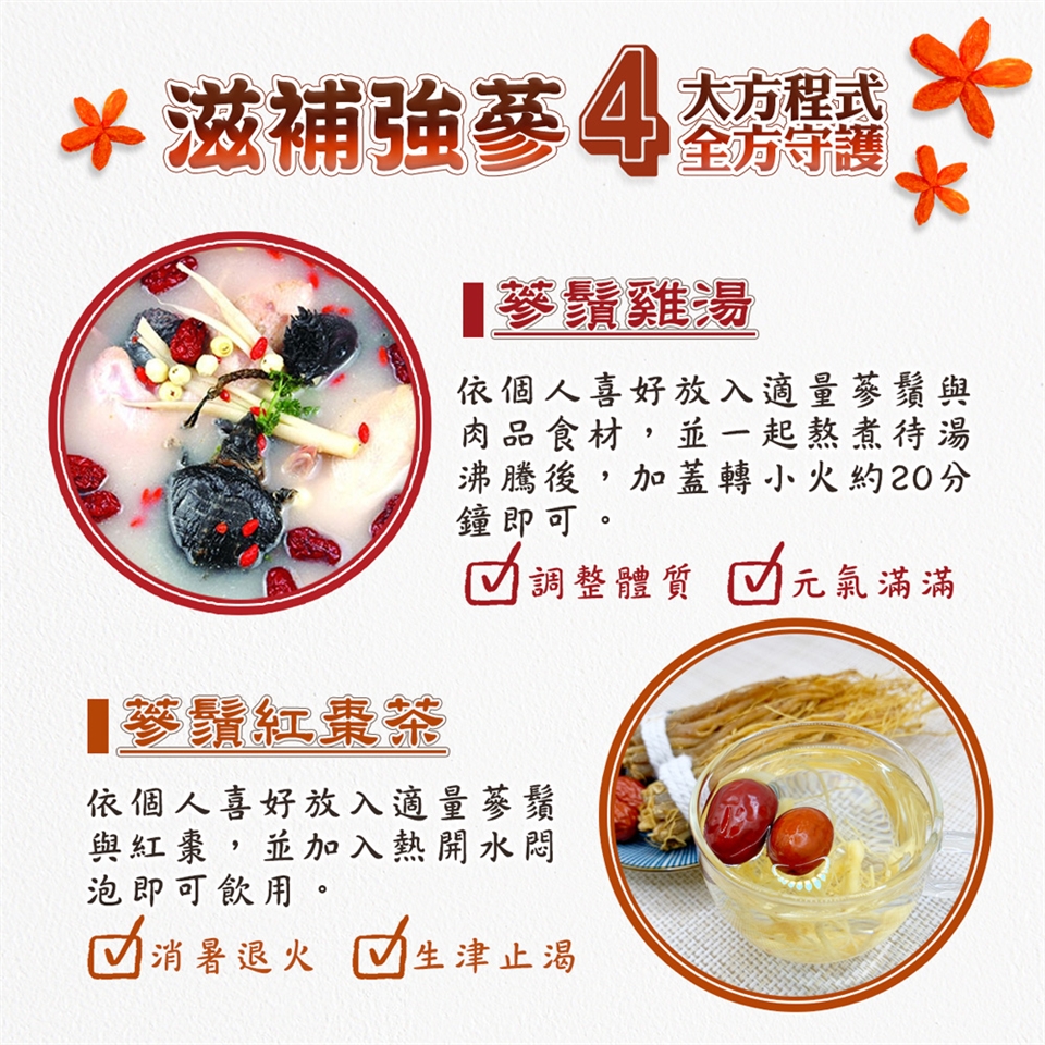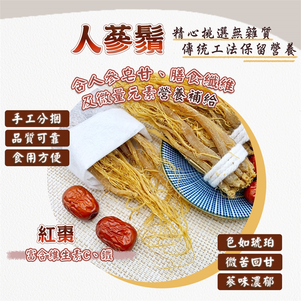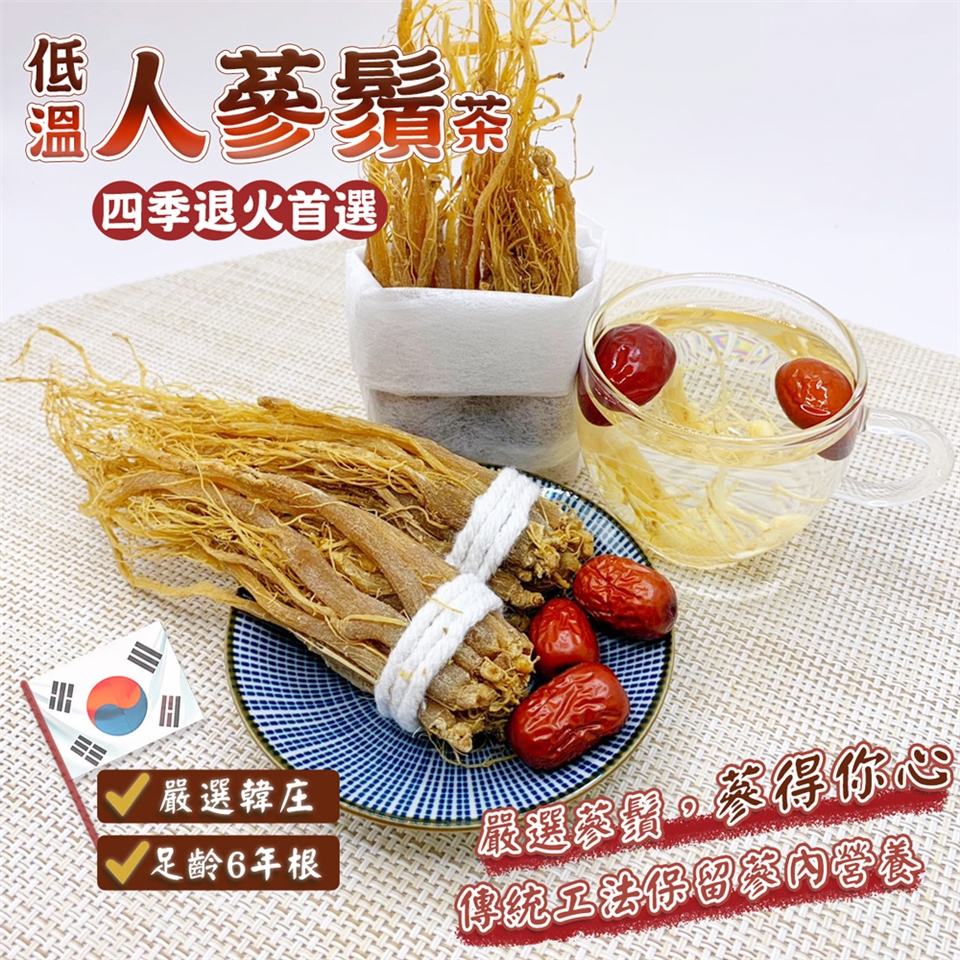 依個人喜好放入適量蔘鬚,並加入熱開水悶泡即可飲用。