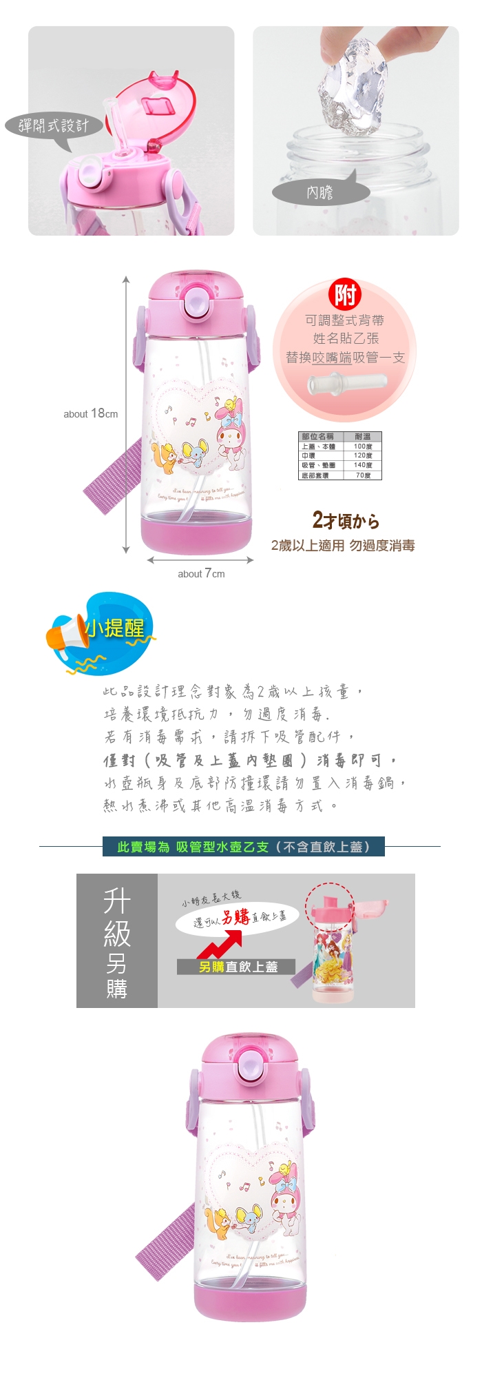 3、底部套環耐溫僅70度,若遇高溫消毒請先取下。