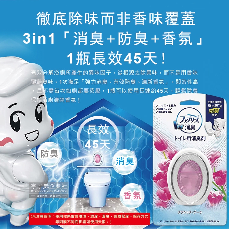 ●品名:浴室廁所3效合1消臭防臭香氛W空氣芳香劑