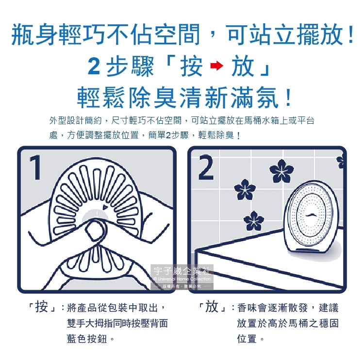(2)香味會逐漸散發,建議放置於高於馬桶之穩固位置。