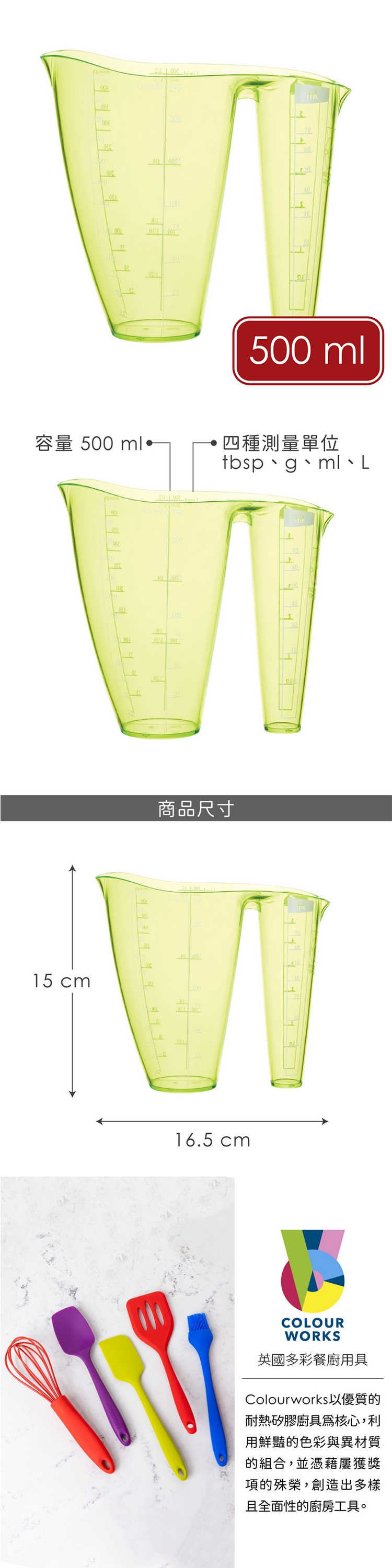※ 透明杯身可輕鬆觀看容量;兩邊皆可作為握柄,操作順手,搭配尖嘴設計好傾倒。