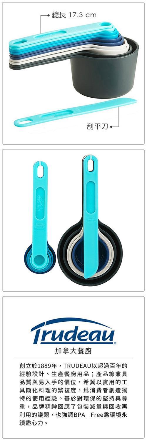 2. 容量分別為 1/4 茶匙 (1.25 ml)、1/2 茶匙 (2.5 ml)、1茶匙 (5 ml)、1/2 大匙 (7.5 ml)、1大匙 (15 ml)、1/8 杯 (30 ml)、1/4 杯 (60 ml)、1/3 杯 (80 ml)、1/2 杯 (125 ml)、1杯 (250 ml)。