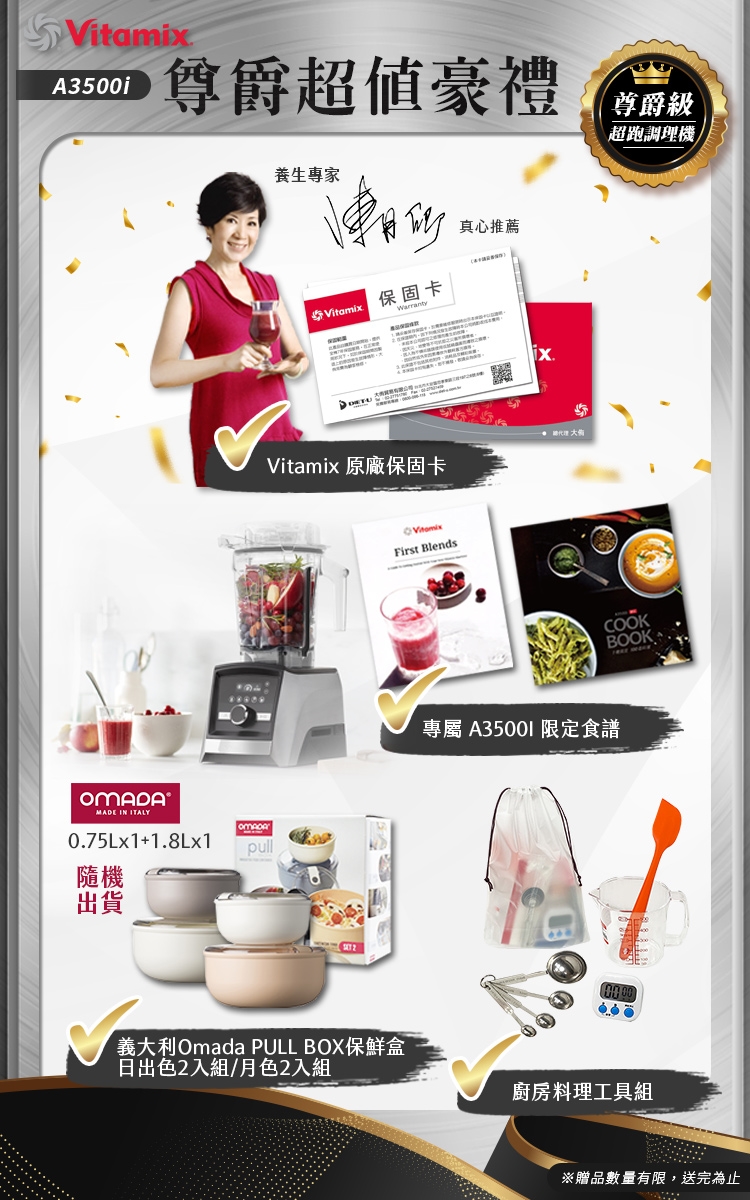 產品配件: 2.0L攪拌杯、專屬攪拌棒、馬達底座、原廠食譜書