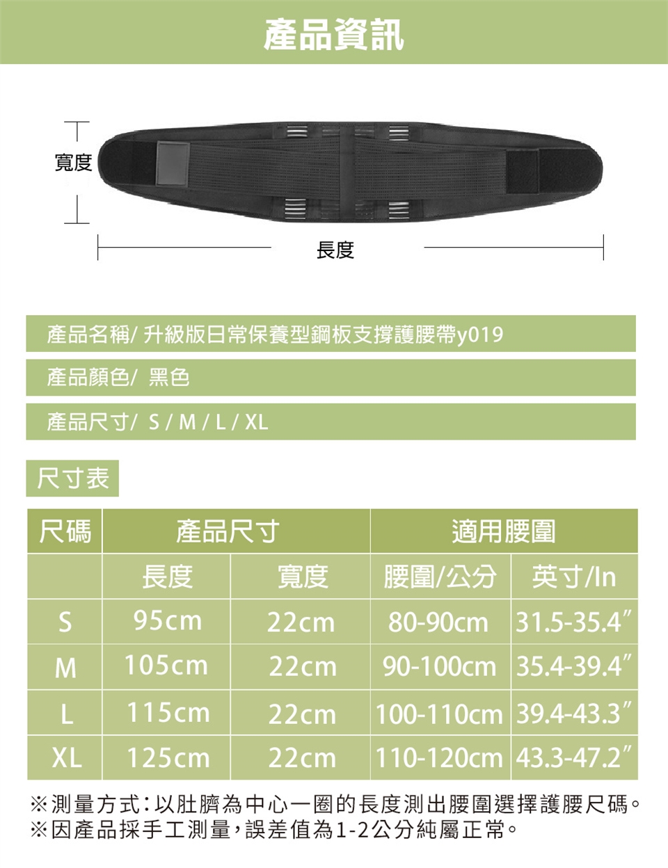 ※測量方式/ 以肚子為中心一圈的長度測出肚圍,以肚子為準選擇護腰尺碼。