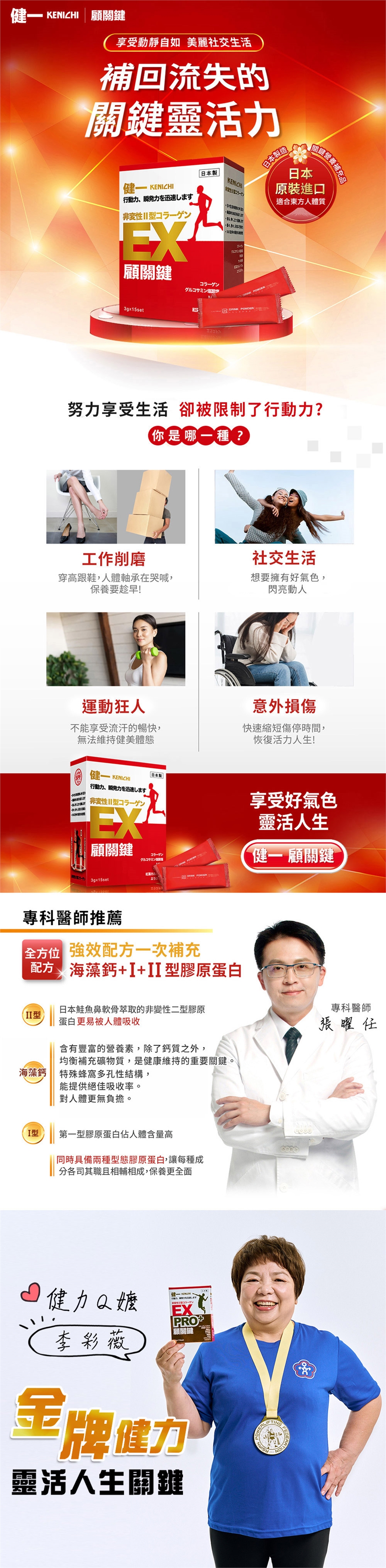 【健一】顧關鍵 日本原裝非變性二型膠原蛋白+葡萄糖胺_關鍵王 經典版x5盒 15包/盒(靈活/行動保健)